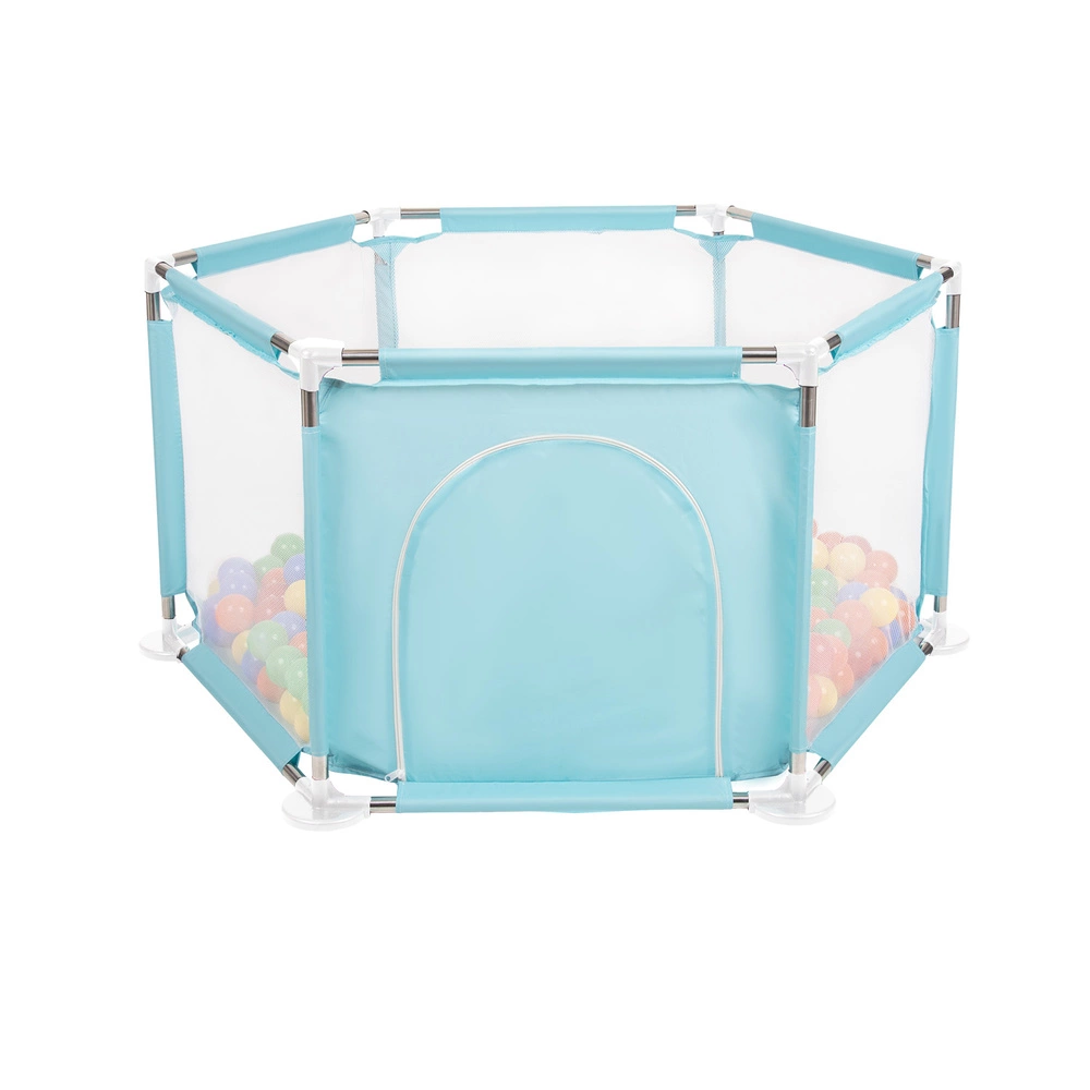 Sześciokąt składany KS-100X z piłeczkami 6cm Zabawka kojec, miętowy: żółty-zielony-niebieski-czerwony-pomarańcz