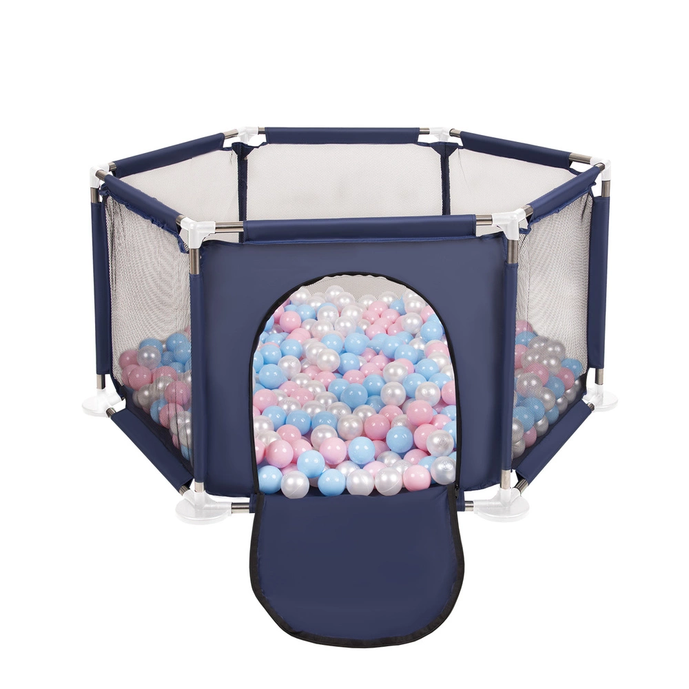 Sześciokąt składany KS-100X z piłeczkami 6cm Zabawka kojec, niebieski: babyblue-pudrowy róż-perła