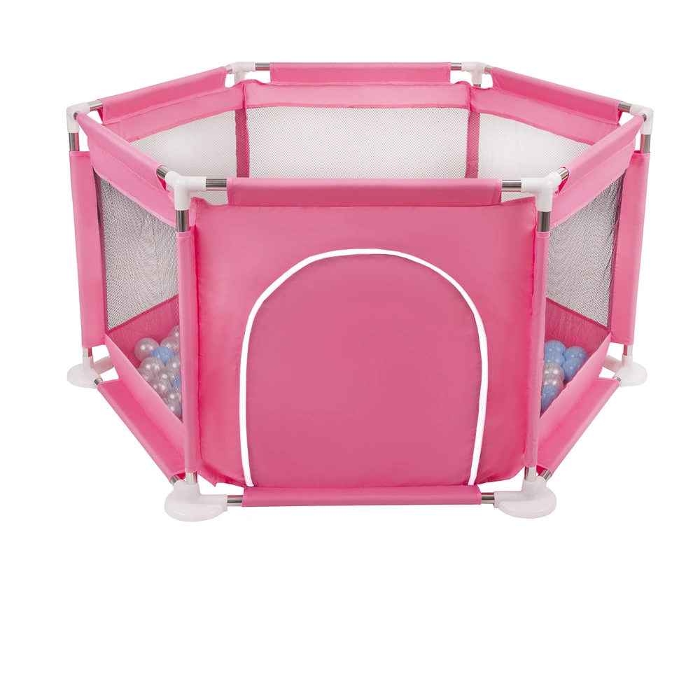 Sześciokąt składany KS-100X z piłeczkami 6cm Zabawka kojec, różowy: babyblue-pudrowy róż-perła