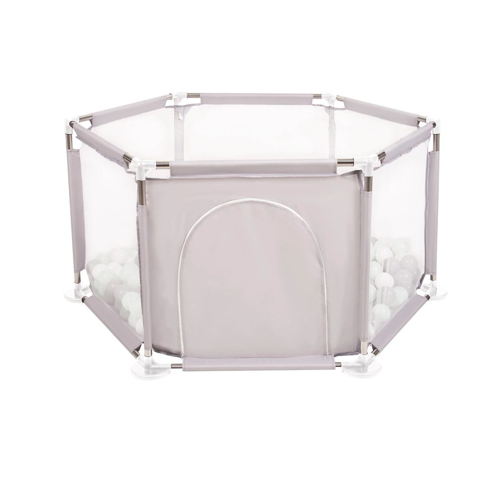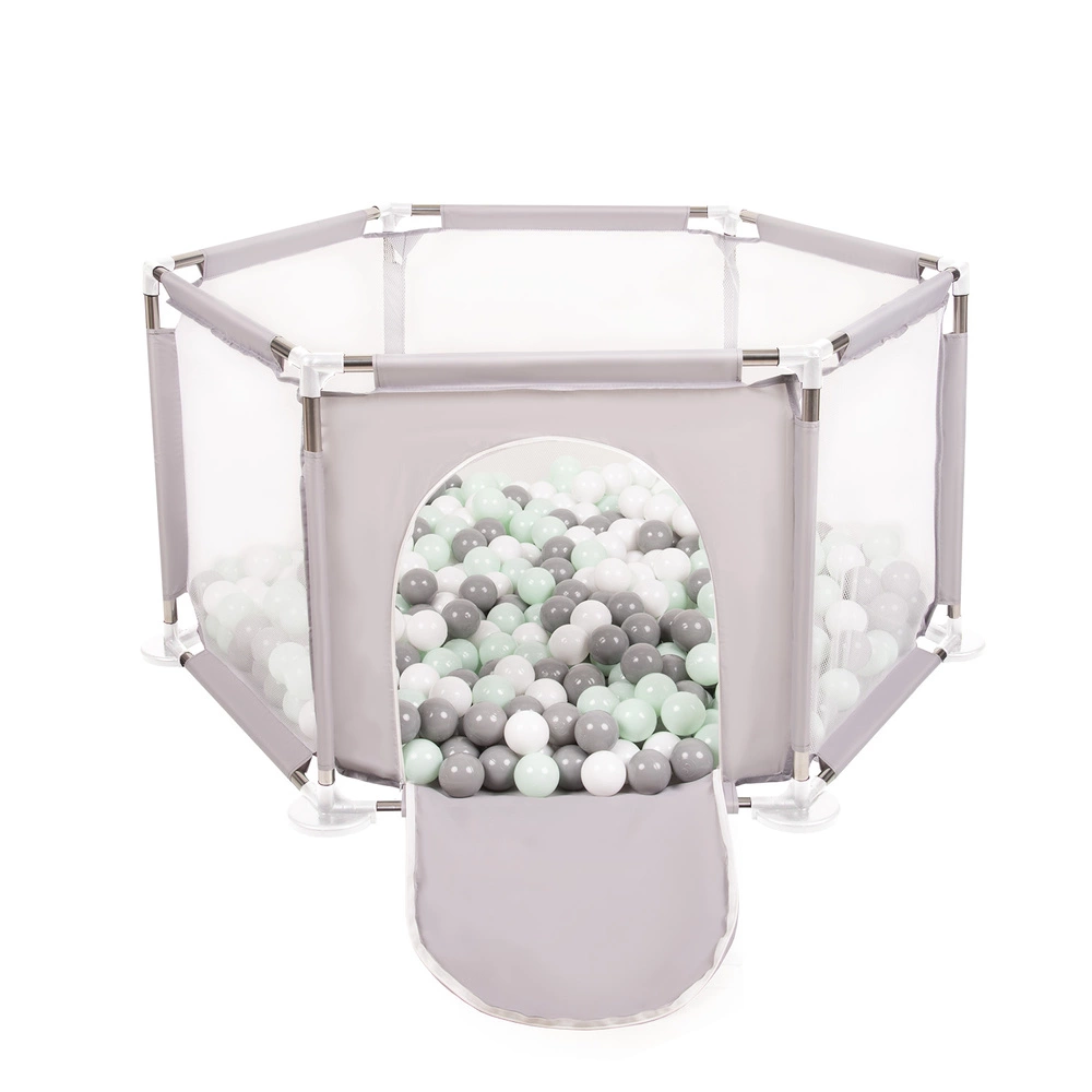 Sześciokąt składany KS-100X z piłeczkami 6cm Zabawka kojec, szary: biały-szary-mięta