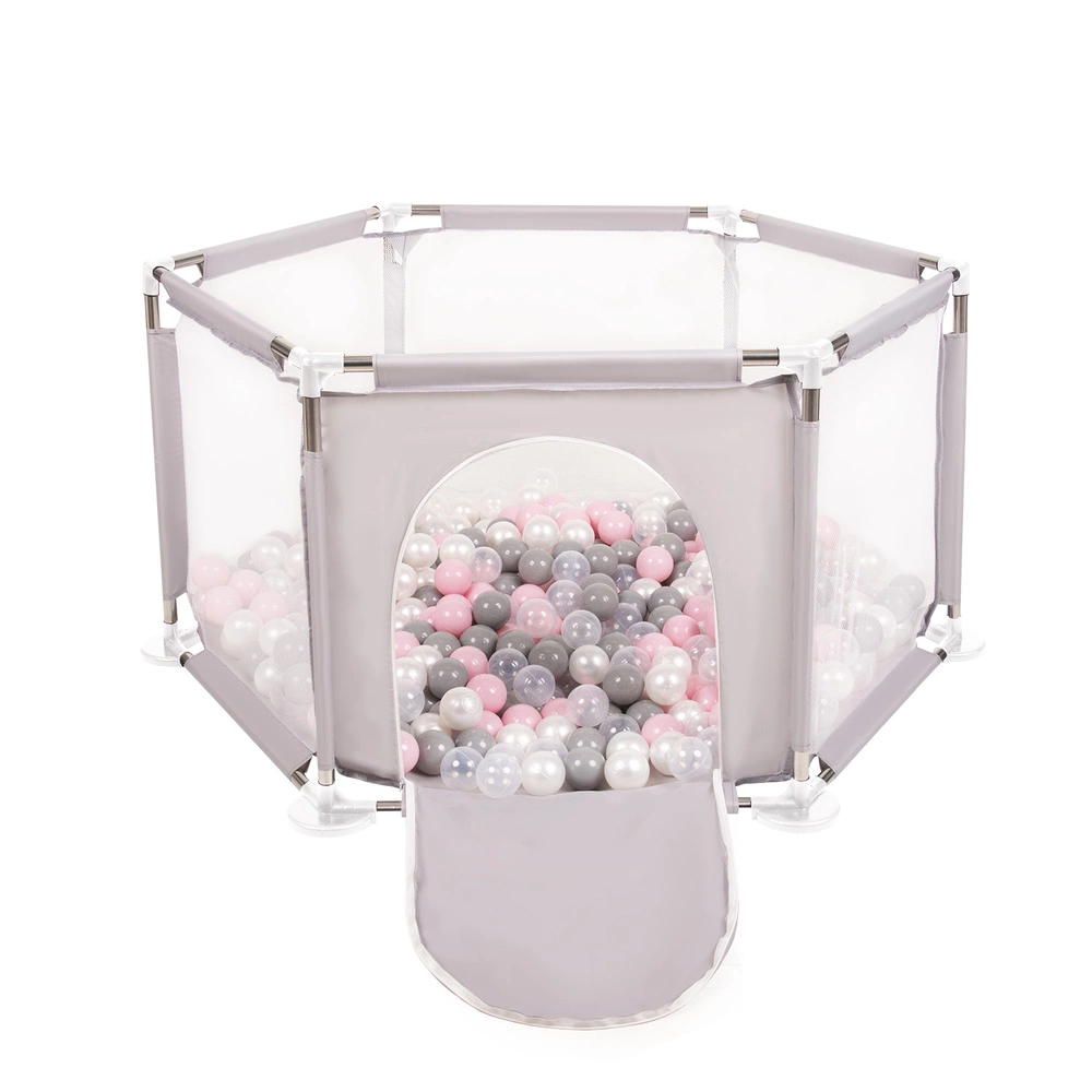 Sześciokąt składany KS-100X z piłeczkami 6cm Zabawka kojec, szary: perła-szary-transparent-pudrowy róż