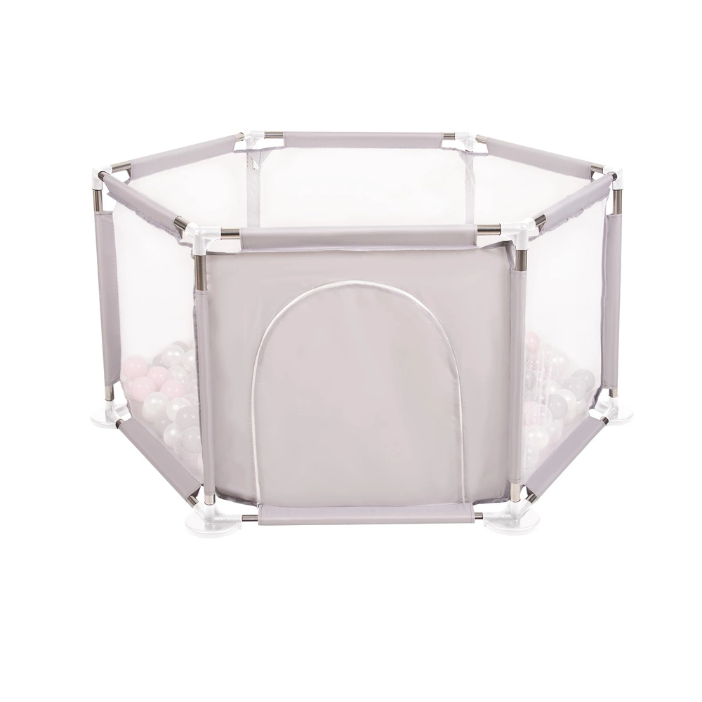 Sześciokąt składany KS-100X z piłeczkami 6cm Zabawka kojec, szary: perła-szary-transparent-pudrowy róż