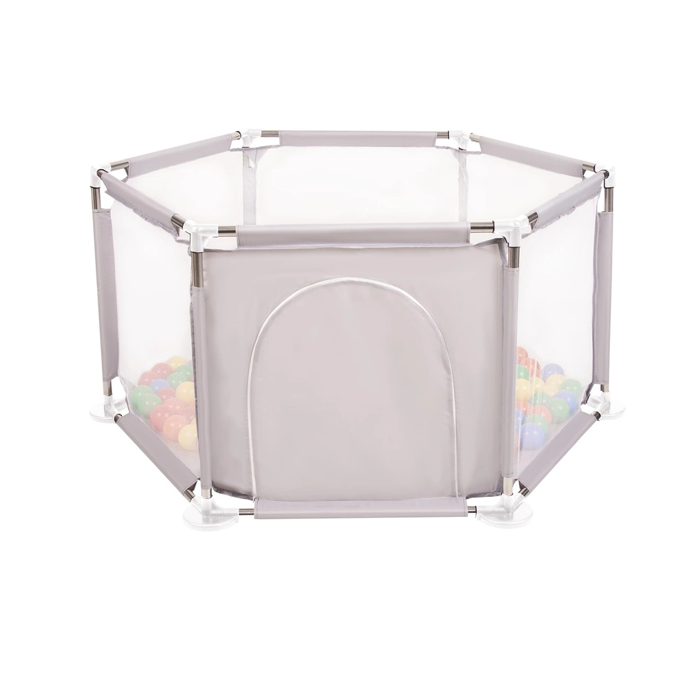 Sześciokąt składany KS-100X z piłeczkami 6cm Zabawka kojec, szary: żółty-zielony-niebieski-czerwony-pomarańcz