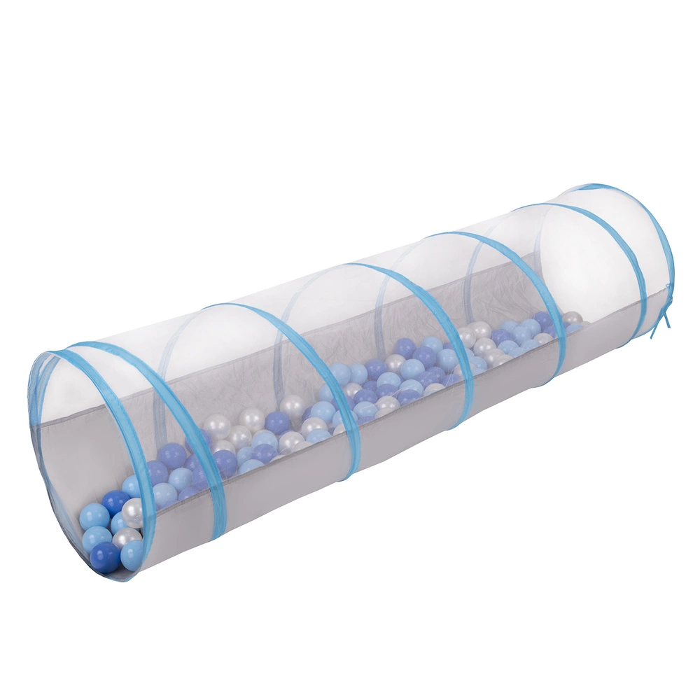 Tunel do zabawy TT-100X z piłeczkami 6cm Zabawka tunel, szaro-niebieski: babyblue-niebieski-perła