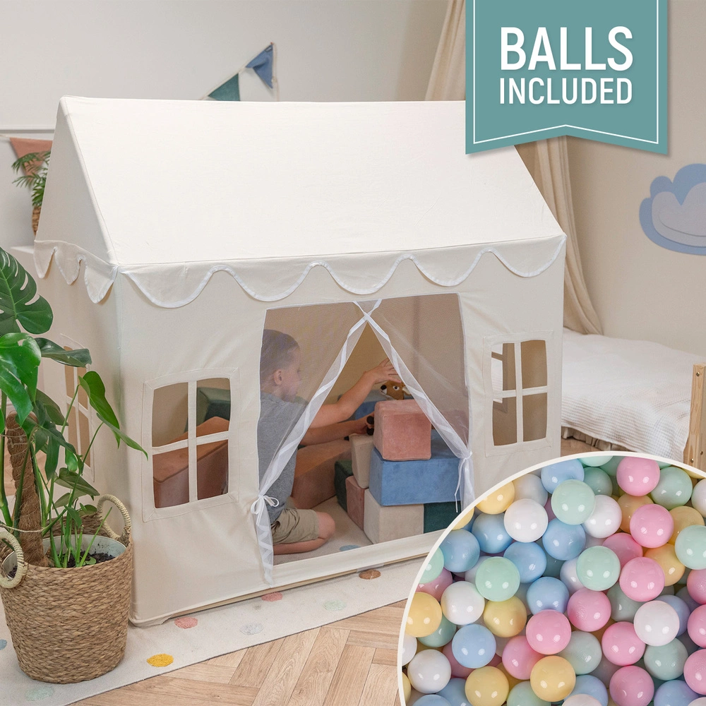 KiddyMoon Domek dla dzieci PH-001 z piłeczkami 7cm Zabawka namiot dla dzieci, natural: pastelowy niebieski-pastelowy żółty-biały-mięta-pudrowy róż