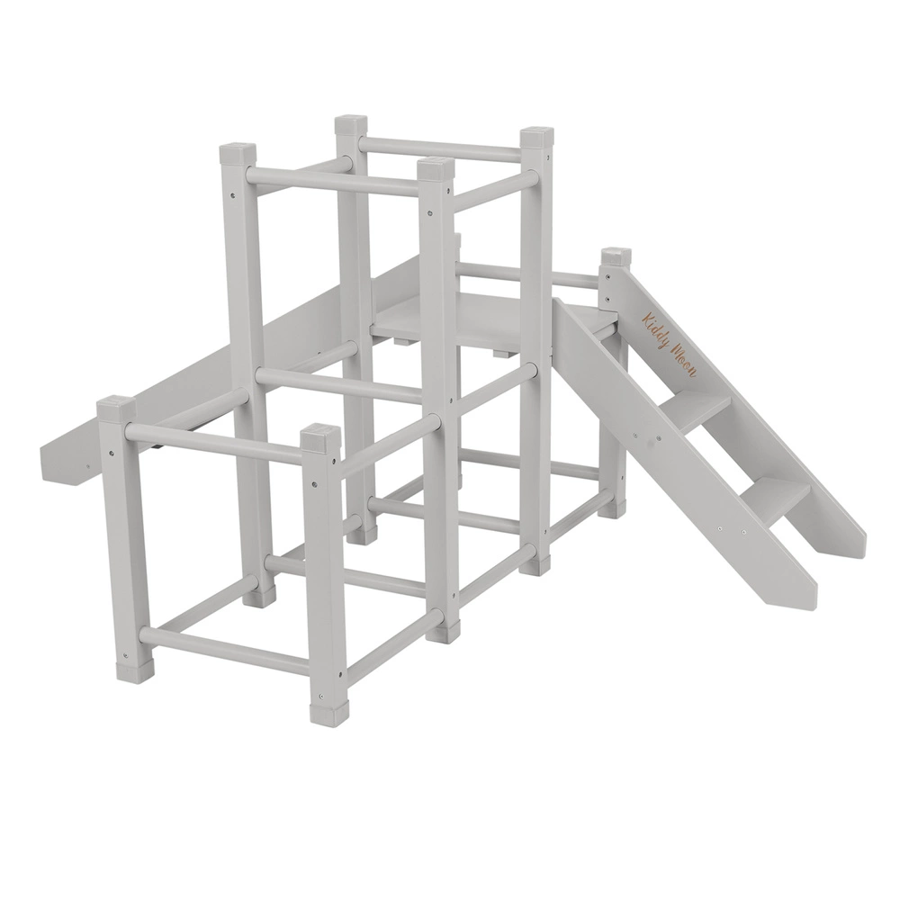 KiddyMoon Drewniany plac zabaw PG-001 Zabawka zjeżdżalnia, szary