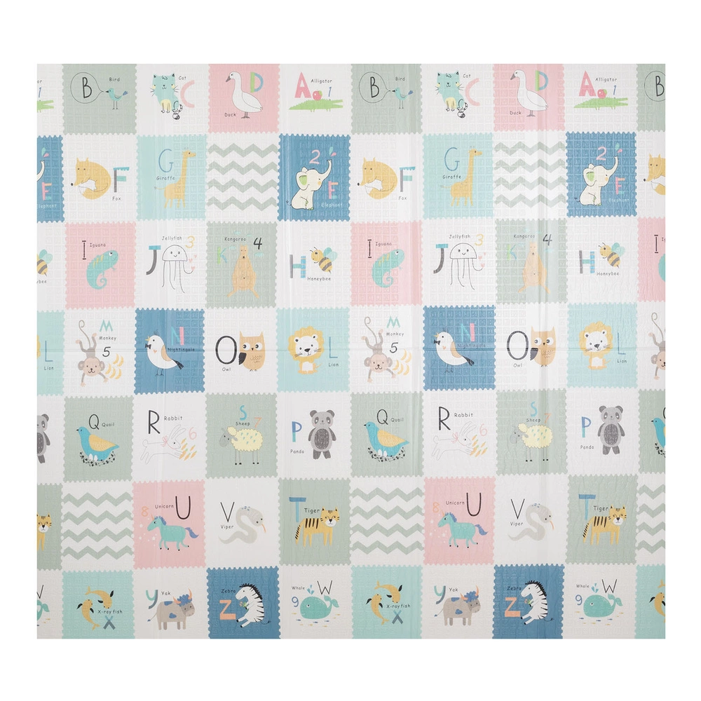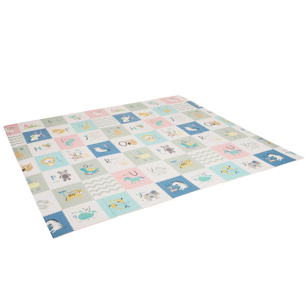 Dwustronna piankowa mata dla dzieci, która doskonale rozwija wyobraźnię i zachęca do zabawy. Pokryta fakturą powierzchnia stymuluje integrację sensoryczną maluchów, a dziecięce wzory, kształty a także cyfry i litery zainteresują dzieci, a także mogą służyć na dalszym etapie do nauki czytania. Matę można obrócić na drugą stronę i na nowo zainteresować dziecko. Delikatne, pastelowe wzory pozwolą dopasować ją do każdego wnętrza.Mata idealnie sprawdzi się podczas nauki raczkowania i chodzenia, będzie idealna dla dzieci uczących się samodzielnego siedzenia oraz niemowląt leżących już na brzuchu. Dzięki swojej grubości jest ciekawą alternatywą dywanu oraz bezpieczną izolacją od zimnej i twardej podłogi. Stanowi doskonałą, miękką podkładkę do zabaw, zapewnia komfort dziecku oraz chroni go w razie upadku. Może być używana wewnątrz jak i na zewnątrz. Rozłożona w domu, w ogrodzie lub na tarasie, stworzy wymarzone miejsce do zabawy i odpoczynku. Możliwość składania wraz z poręcznym opakowaniem sprawia, że łatwo możemy ją zabrać ze sobą do znajomych, na wycieczkę, czy po prostu wynieść na zewnątrz.