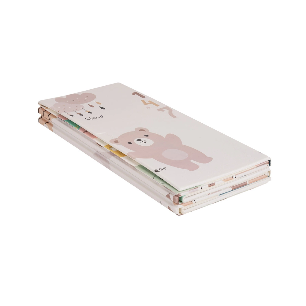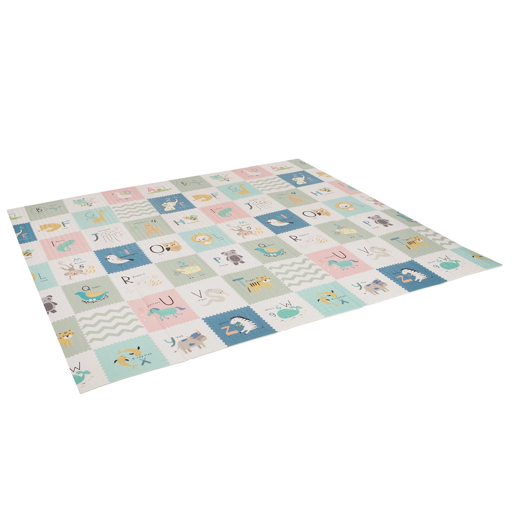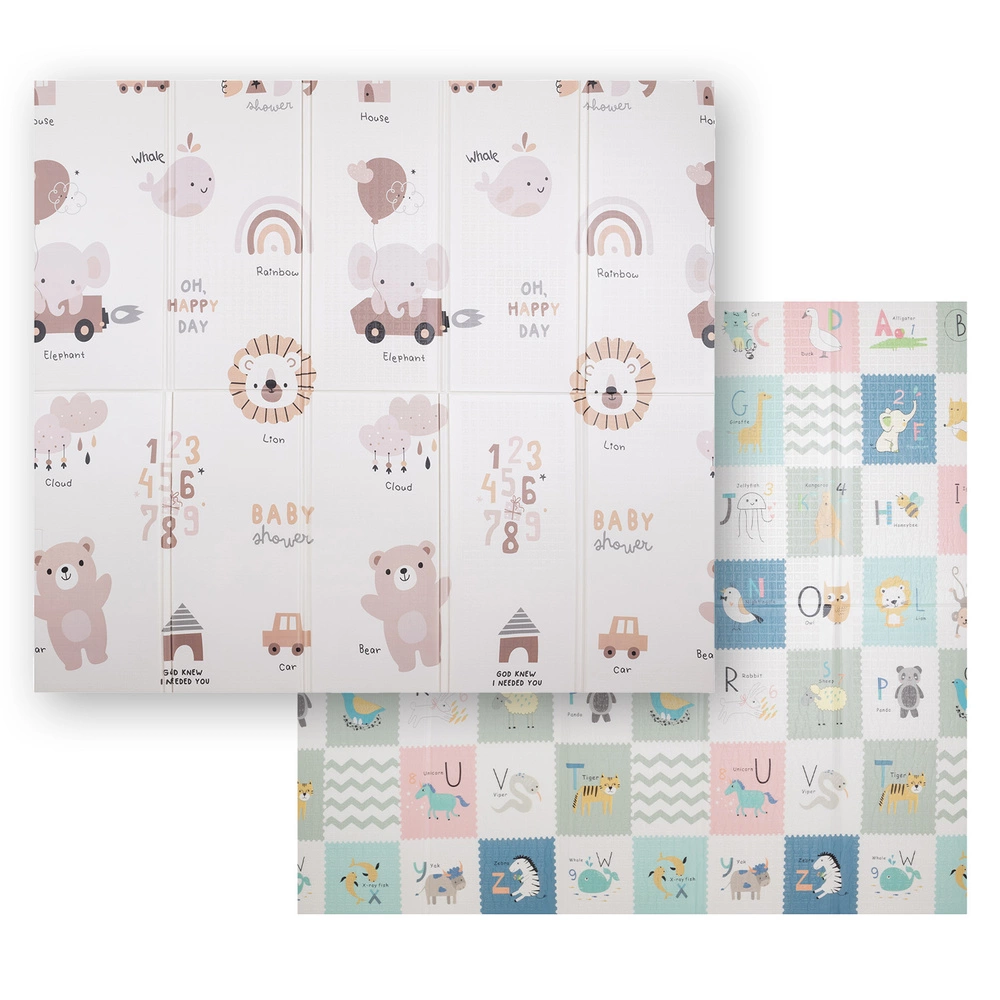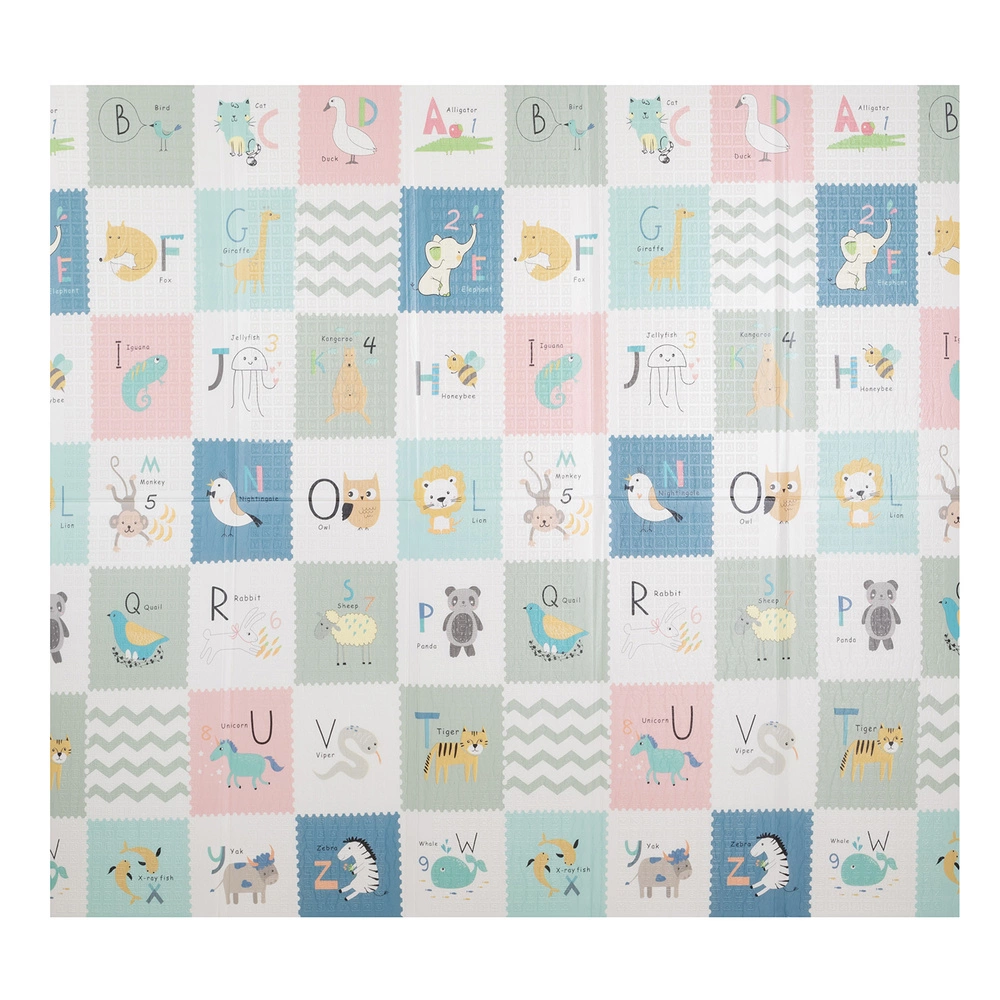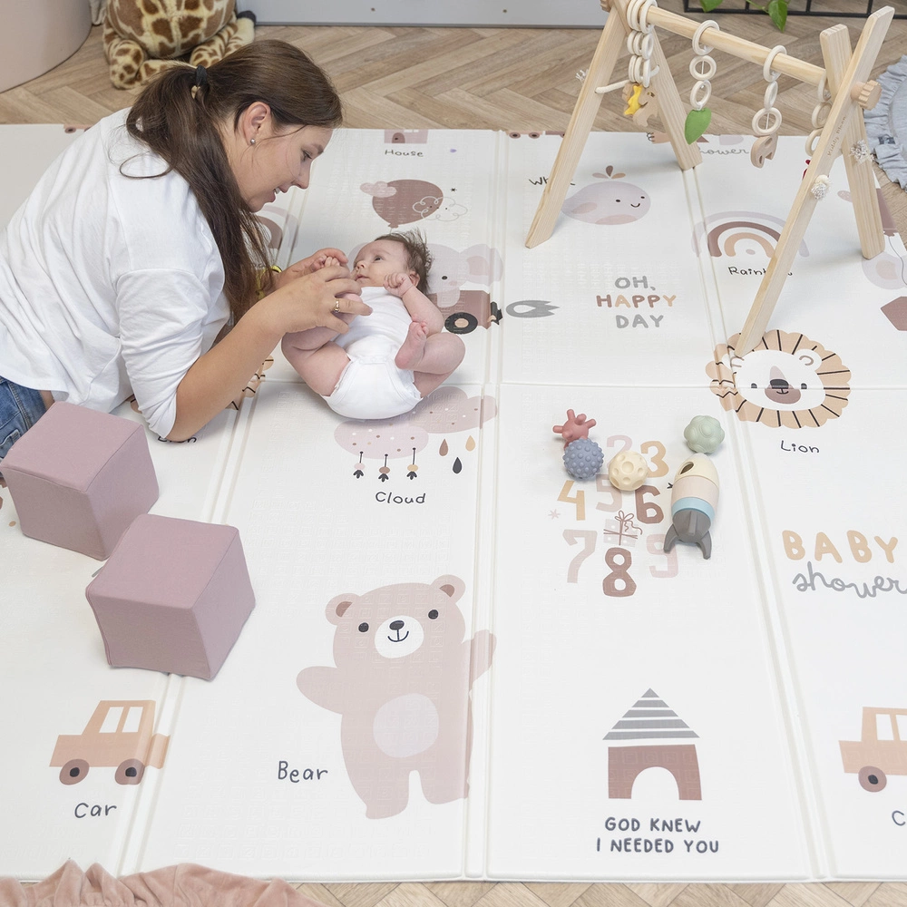 Dwustronna piankowa mata dla dzieci, która doskonale rozwija wyobraźnię i zachęca do zabawy. Pokryta fakturą powierzchnia stymuluje integrację sensoryczną maluchów, a dziecięce wzory, kształty a także cyfry i litery zainteresują dzieci, a także mogą służyć na dalszym etapie do nauki czytania. Matę można obrócić na drugą stronę i na nowo zainteresować dziecko. Delikatne, pastelowe wzory pozwolą dopasować ją do każdego wnętrza.Mata idealnie sprawdzi się podczas nauki raczkowania i chodzenia, będzie idealna dla dzieci uczących się samodzielnego siedzenia oraz niemowląt leżących już na brzuchu. Dzięki swojej grubości jest ciekawą alternatywą dywanu oraz bezpieczną izolacją od zimnej i twardej podłogi. Stanowi doskonałą, miękką podkładkę do zabaw, zapewnia komfort dziecku oraz chroni go w razie upadku. Może być używana wewnątrz jak i na zewnątrz. Rozłożona w domu, w ogrodzie lub na tarasie, stworzy wymarzone miejsce do zabawy i odpoczynku. Możliwość składania wraz z poręcznym opakowaniem sprawia, że łatwo możemy ją zabrać ze sobą do znajomych, na wycieczkę, czy po prostu wynieść na zewnątrz.