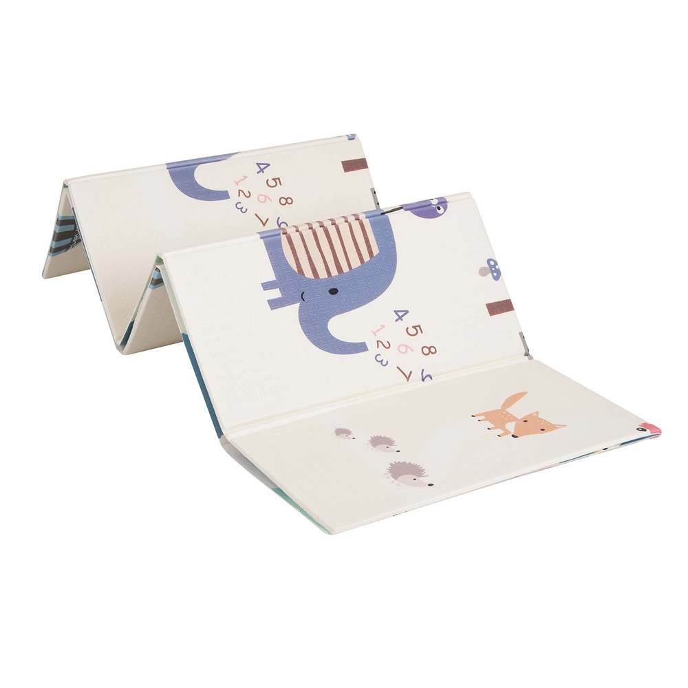 Dwustronna piankowa mata dla dzieci, która doskonale rozwija wyobraźnię i zachęca do zabawy. Pokryta fakturą powierzchnia stymuluje integrację sensoryczną maluchów, a dziecięce wzory, kształty a także cyfry i litery zainteresują dzieci, a także mogą służyć na dalszym etapie do nauki czytania. Matę można obrócić na drugą stronę i na nowo zainteresować dziecko. Delikatne, pastelowe wzory pozwolą dopasować ją do każdego wnętrza.Mata idealnie sprawdzi się podczas nauki raczkowania i chodzenia, będzie idealna dla dzieci uczących się samodzielnego siedzenia oraz niemowląt leżących już na brzuchu. Dzięki swojej grubości jest ciekawą alternatywą dywanu oraz bezpieczną izolacją od zimnej i twardej podłogi. Stanowi doskonałą, miękką podkładkę do zabaw, zapewnia komfort dziecku oraz chroni go w razie upadku. Może być używana wewnątrz jak i na zewnątrz. Rozłożona w domu, w ogrodzie lub na tarasie, stworzy wymarzone miejsce do zabawy i odpoczynku. Możliwość składania wraz z poręcznym opakowaniem sprawia, że łatwo możemy ją zabrać ze sobą do znajomych, na wycieczkę, czy po prostu wynieść na zewnątrz.