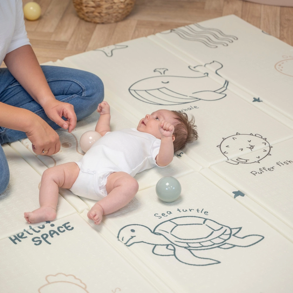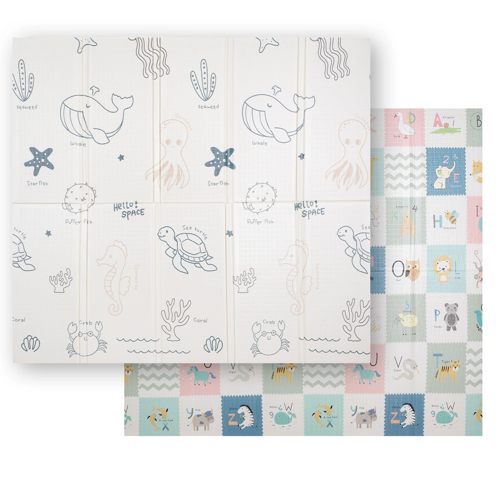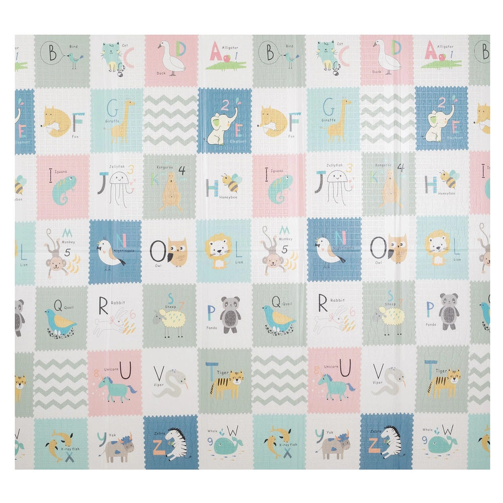 Dwustronna piankowa mata dla dzieci, która doskonale rozwija wyobraźnię i zachęca do zabawy. Pokryta fakturą powierzchnia stymuluje integrację sensoryczną maluchów, a dziecięce wzory, kształty a także cyfry i litery zainteresują dzieci, a także mogą służyć na dalszym etapie do nauki czytania. Matę można obrócić na drugą stronę i na nowo zainteresować dziecko. Delikatne, pastelowe wzory pozwolą dopasować ją do każdego wnętrza.Mata idealnie sprawdzi się podczas nauki raczkowania i chodzenia, będzie idealna dla dzieci uczących się samodzielnego siedzenia oraz niemowląt leżących już na brzuchu. Dzięki swojej grubości jest ciekawą alternatywą dywanu oraz bezpieczną izolacją od zimnej i twardej podłogi. Stanowi doskonałą, miękką podkładkę do zabaw, zapewnia komfort dziecku oraz chroni go w razie upadku. Może być używana wewnątrz jak i na zewnątrz. Rozłożona w domu, w ogrodzie lub na tarasie, stworzy wymarzone miejsce do zabawy i odpoczynku. Możliwość składania wraz z poręcznym opakowaniem sprawia, że łatwo możemy ją zabrać ze sobą do znajomych, na wycieczkę, czy po prostu wynieść na zewnątrz.