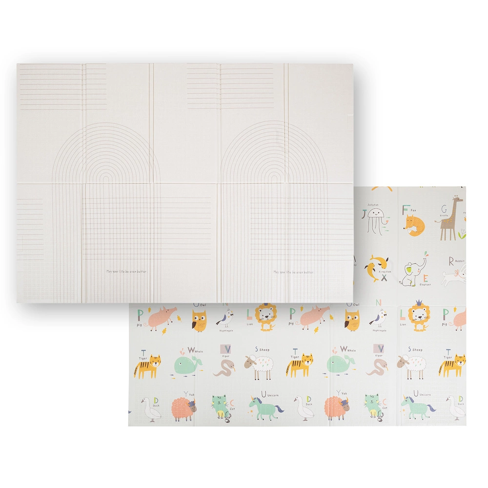 Dwustronna piankowa mata dla dzieci, która doskonale rozwija wyobraźnię i zachęca do zabawy. Pokryta fakturą powierzchnia stymuluje integrację sensoryczną maluchów, a dziecięce wzory, kształty a także cyfry i litery zainteresują dzieci, a także mogą służyć na dalszym etapie do nauki czytania. Matę można obrócić na drugą stronę i na nowo zainteresować dziecko. Delikatne, pastelowe wzory pozwolą dopasować ją do każdego wnętrza.Mata idealnie sprawdzi się podczas nauki raczkowania i chodzenia, będzie idealna dla dzieci uczących się samodzielnego siedzenia oraz niemowląt leżących już na brzuchu. Dzięki swojej grubości jest ciekawą alternatywą dywanu oraz bezpieczną izolacją od zimnej i twardej podłogi. Stanowi doskonałą, miękką podkładkę do zabaw, zapewnia komfort dziecku oraz chroni go w razie upadku. Może być używana wewnątrz jak i na zewnątrz. Rozłożona w domu, w ogrodzie lub na tarasie, stworzy wymarzone miejsce do zabawy i odpoczynku. Możliwość składania wraz z poręcznym opakowaniem sprawia, że łatwo możemy ją zabrać ze sobą do znajomych, na wycieczkę, czy po prostu wynieść na zewnątrz.