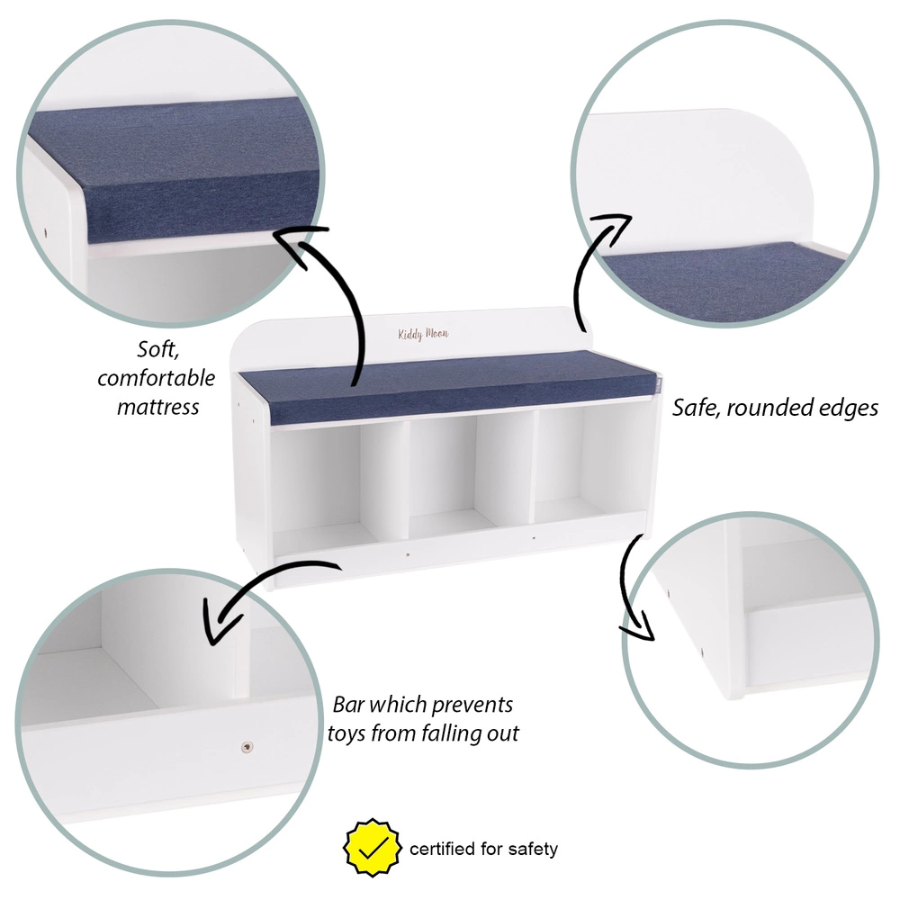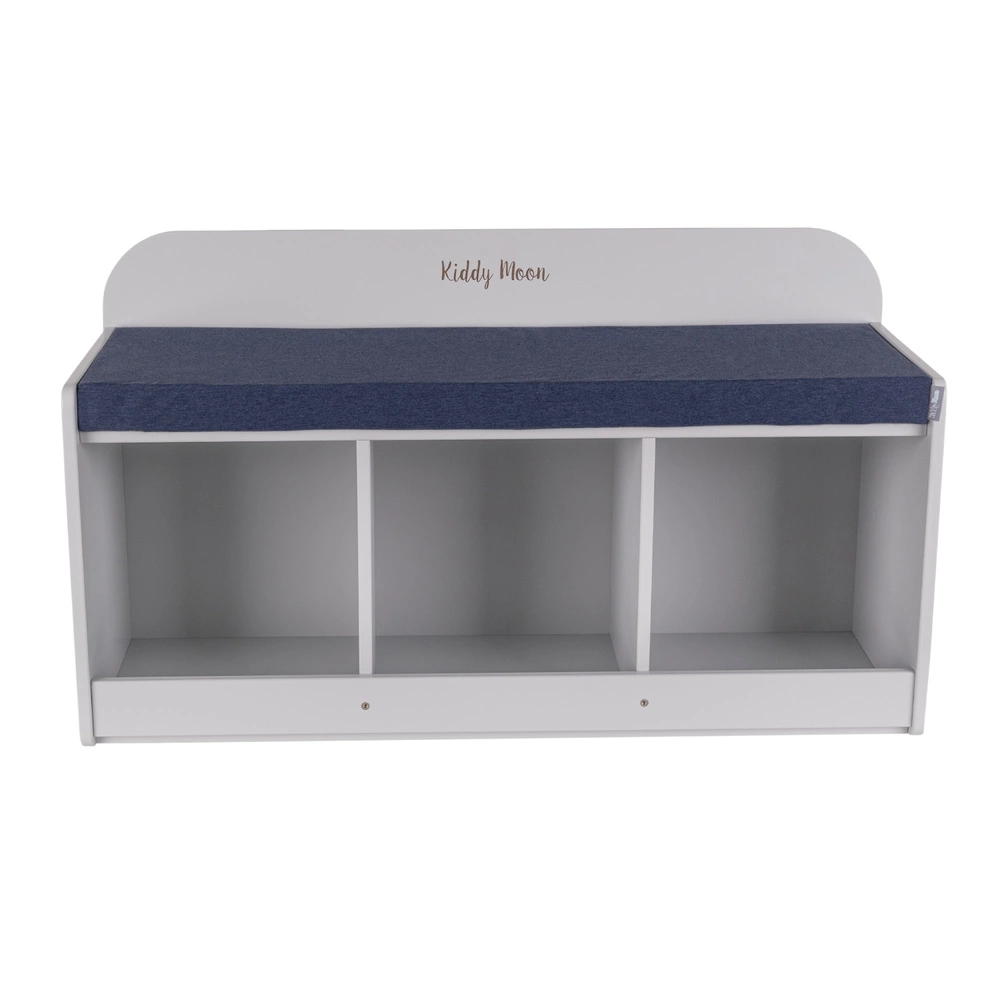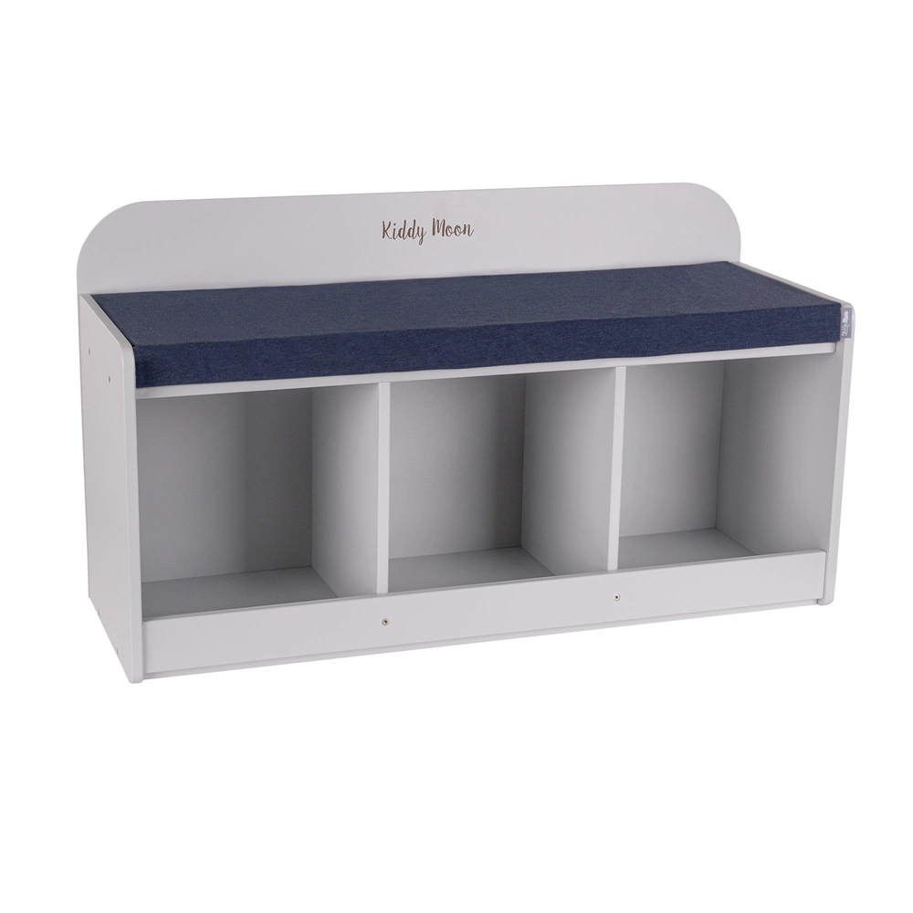 KiddyMoon Ławka z materacem BN-001 Mebel z półkami, szary/granatowy