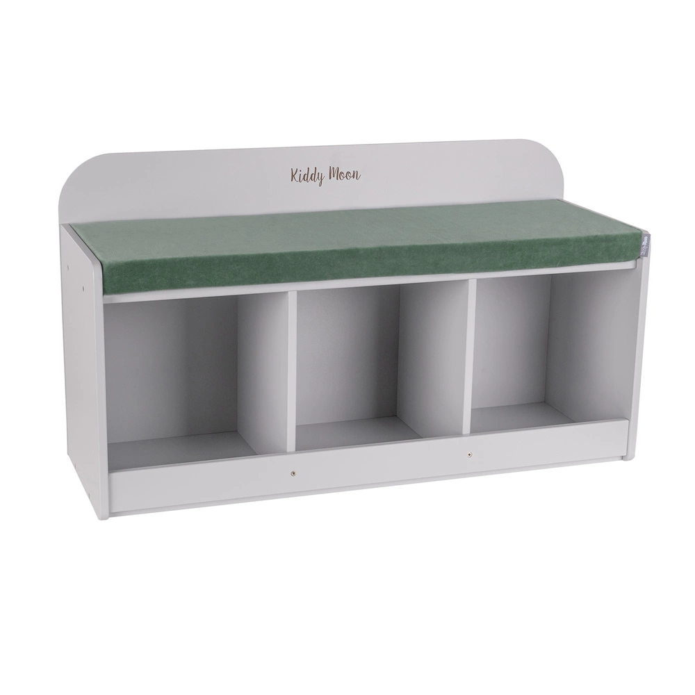 KiddyMoon Ławka z materacem BN-001 Mebel z półkami, szary/zieleń lasu