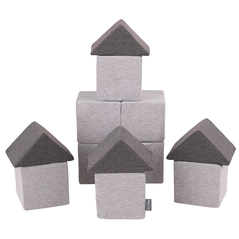 KiddyMoon Miękkie klocki 14cm Zabawka klocki z pianki, mix: jasnoszary-ciemnoszary