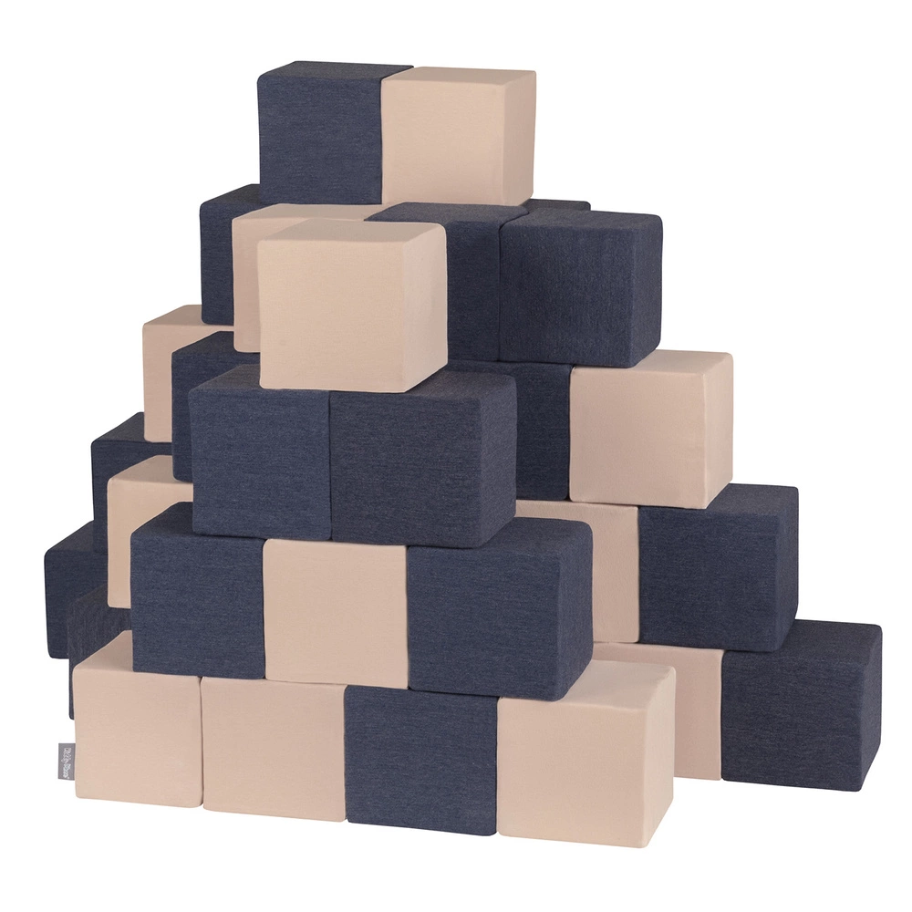 KiddyMoon Miękkie klocki 14cm Zabawka klocki z pianki, sześciany: granatowy-beżowy