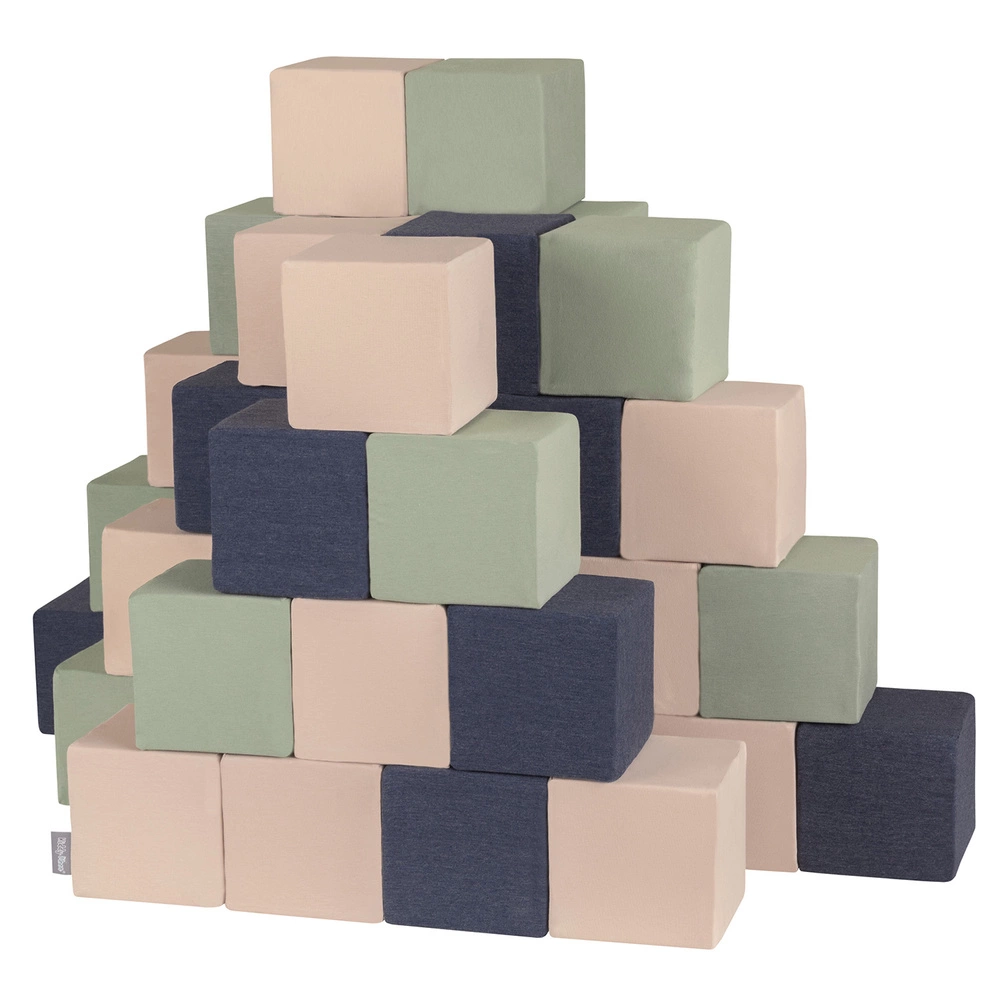 KiddyMoon Miękkie klocki 14cm Zabawka klocki z pianki, sześciany: granatowy-beżowy-szałwiowy