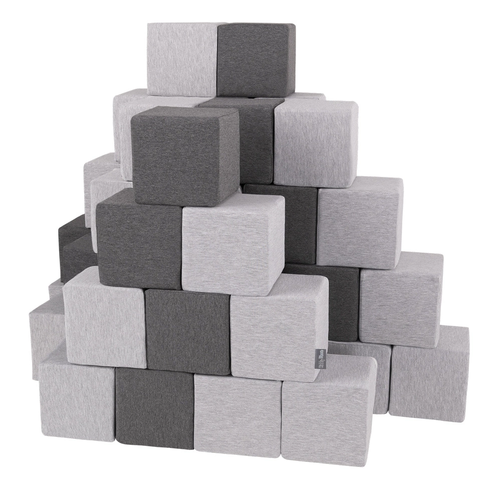 KiddyMoon Miękkie klocki 14cm Zabawka klocki z pianki, sześciany: jasnoszary-ciemnoszary