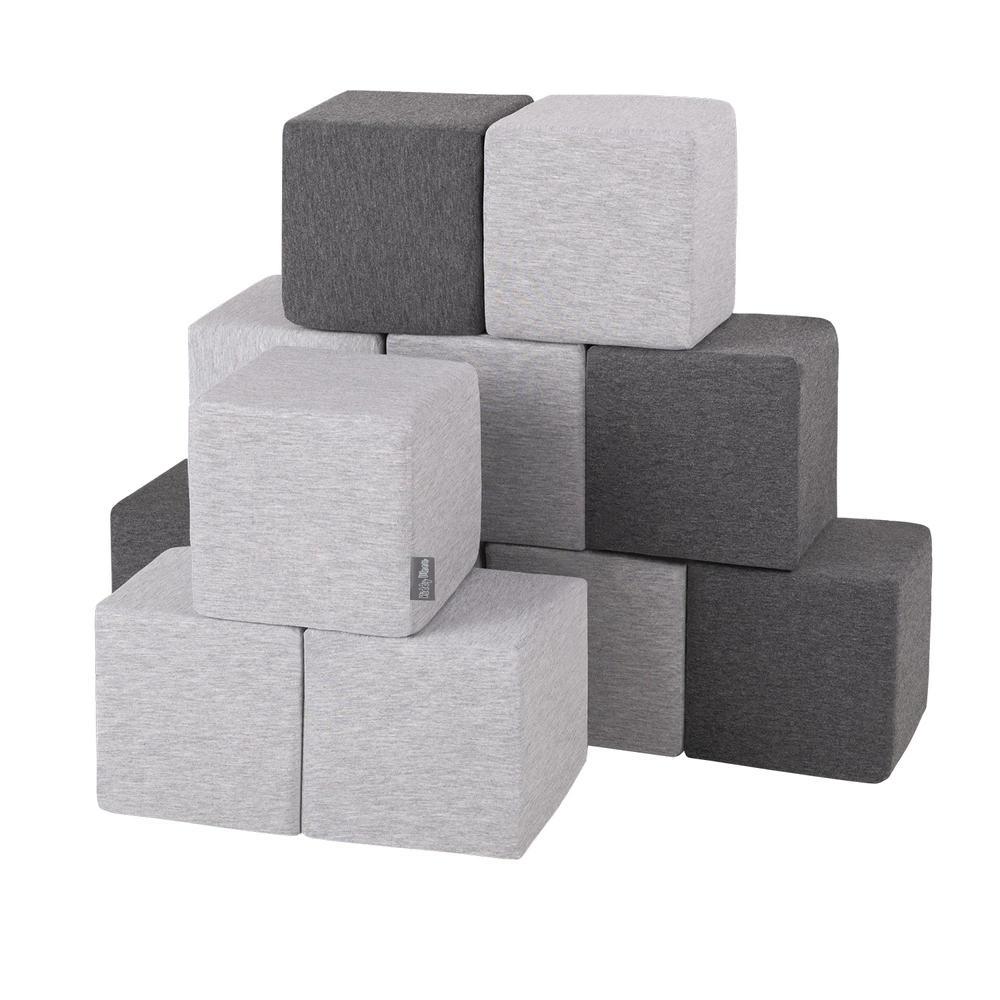 KiddyMoon Miękkie klocki 14cm Zabawka klocki z pianki, sześciany: jasnoszary-ciemnoszary