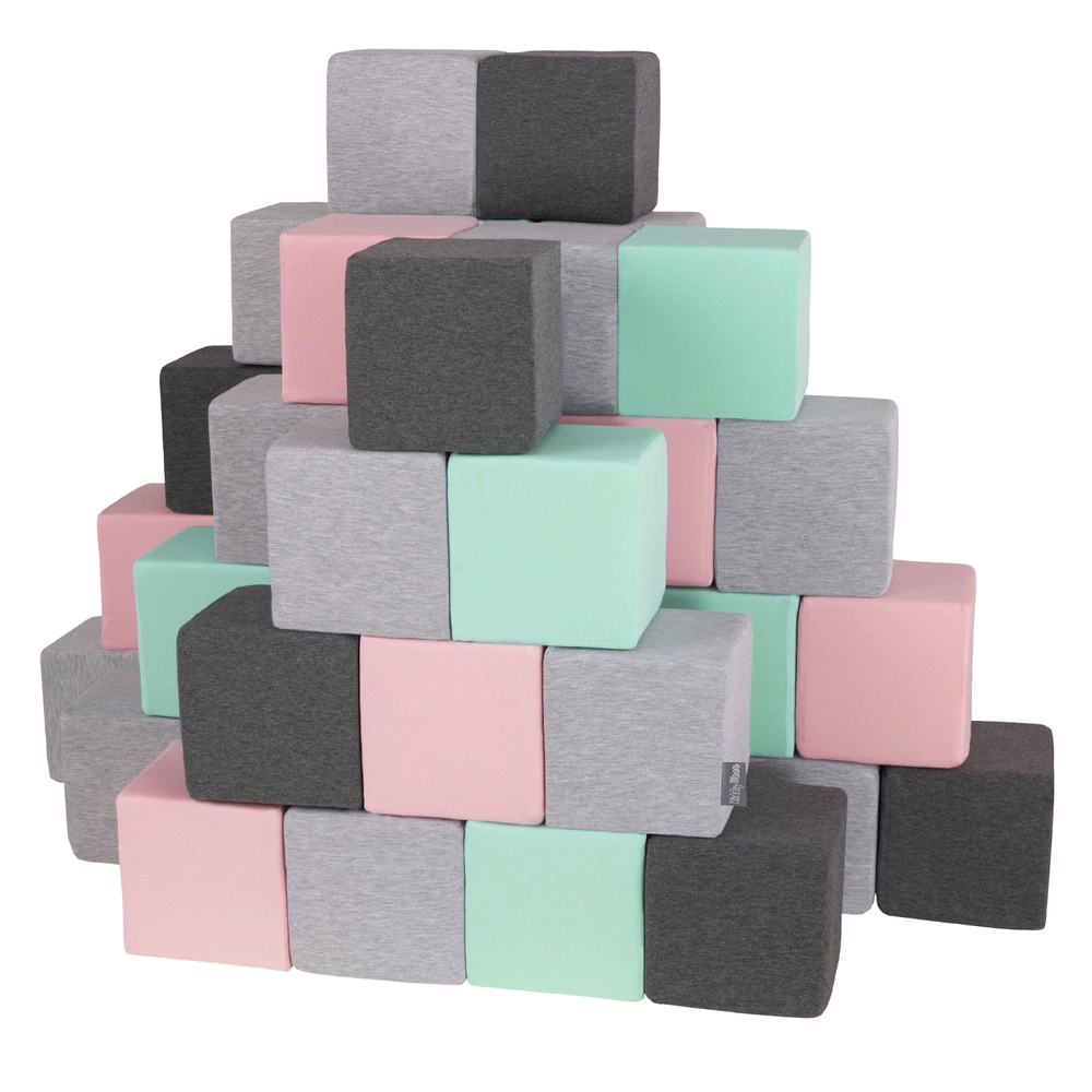 KiddyMoon Miękkie klocki 14cm Zabawka klocki z pianki, sześciany: jasnoszary-ciemnoszary-różowy-miętowy