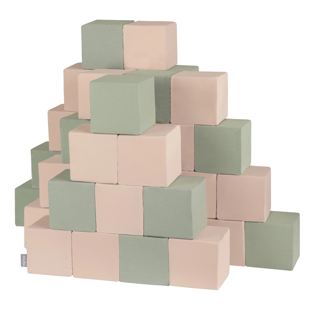 KiddyMoon Miękkie klocki 14cm Zabawka klocki z pianki, sześciany: szałwiowy-beżowy