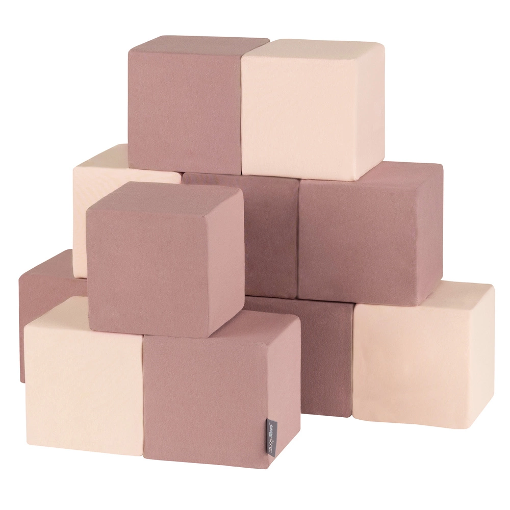 KiddyMoon Miękkie klocki 14cm Zabawka klocki z pianki, sześciany: wrzosowy-beżowy