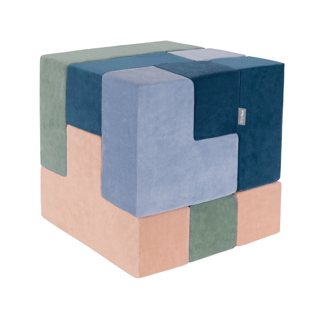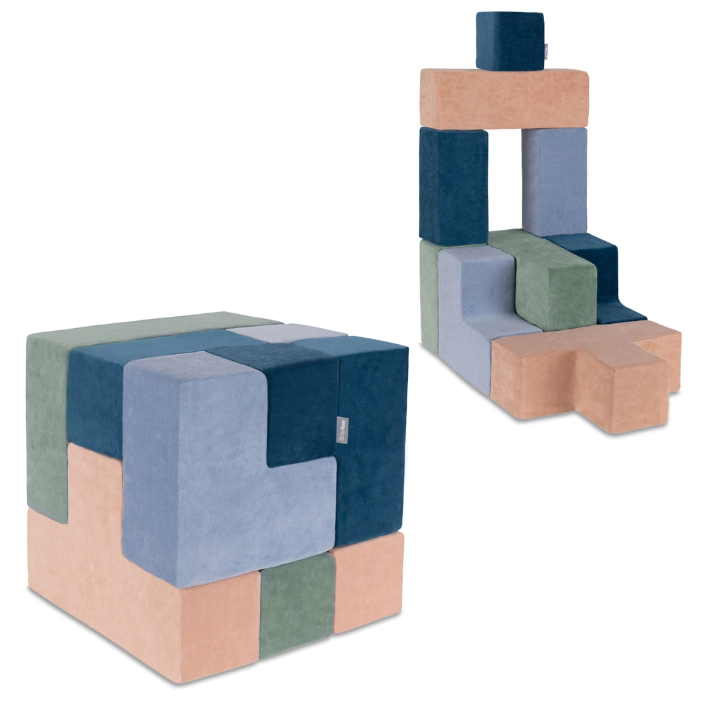 KiddyMoon Piankowe kształty do zabawy VELVET Zabawka klocki z pianki, turkus laguny-zieleń lasu-róż pustyni-błękit lodu