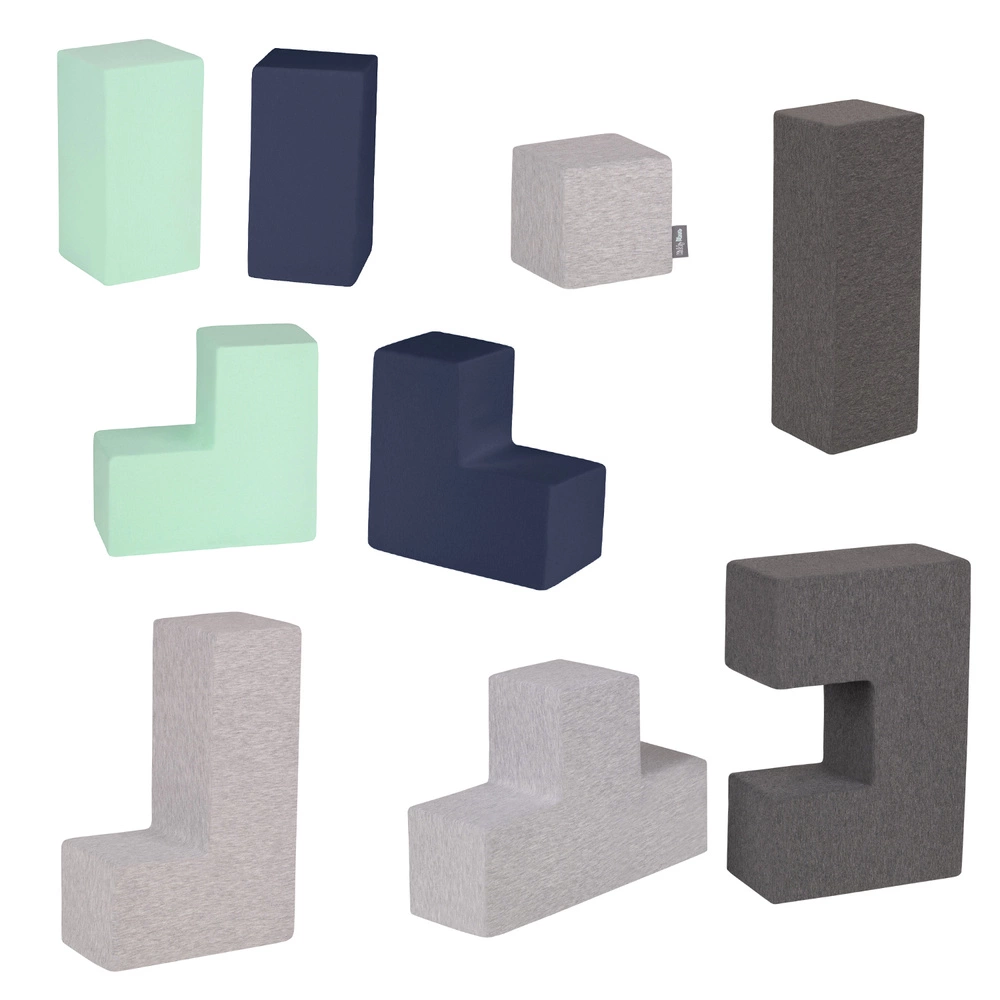KiddyMoon Piankowe kształty do zabawy Zabawka klocki z pianki, jasnoszary-ciemnoszary-granatowy-miętowy