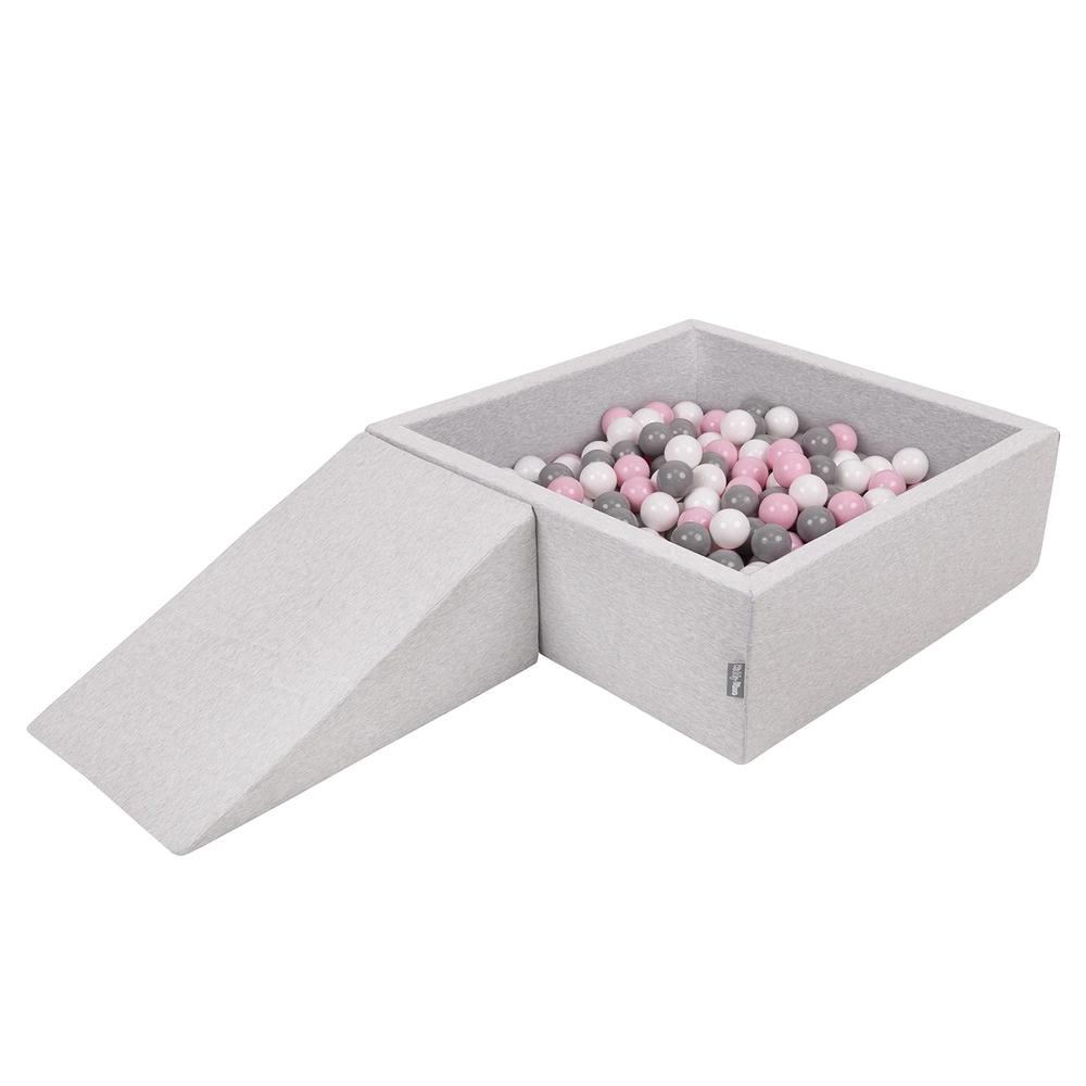 KiddyMoon Piankowy plac zabaw PPZP-KW30D-112 z piłeczkami Zabawka plac zabaw, jasnoszary: biały-szary-pudrowy róż