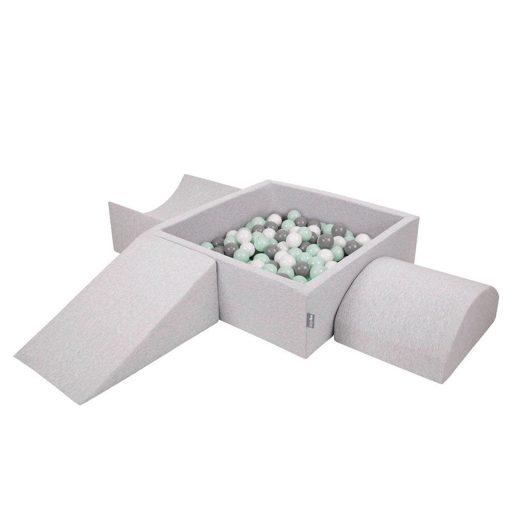 KiddyMoon Piankowy plac zabaw PPZP-KW30D-114 z piłeczkami Zabawka plac zabaw, jasnoszary: biały-szary-mięta