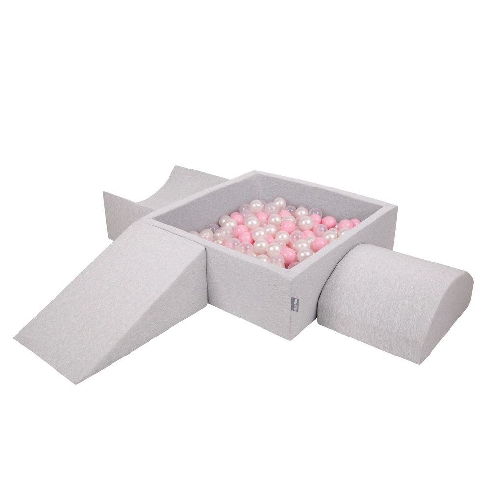 KiddyMoon Piankowy plac zabaw PPZP-KW30D-114 z piłeczkami Zabawka plac zabaw, jasnoszary: pudrowy róż-perła-transparent