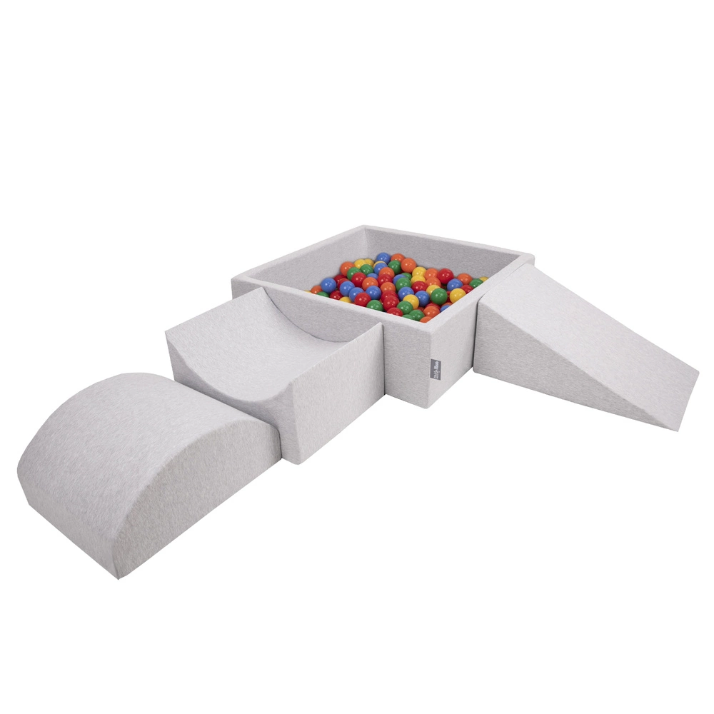 KiddyMoon Piankowy plac zabaw PPZP-KW30D-114 z piłeczkami Zabawka plac zabaw, jasnoszary: żółty-zielony-niebieski-czerwony-pomarańcz