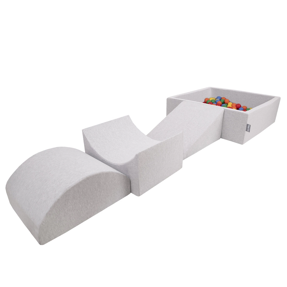KiddyMoon Piankowy plac zabaw PPZP-KW30D-114 z piłeczkami Zabawka plac zabaw, jasnoszary: żółty-zielony-niebieski-czerwony-pomarańcz