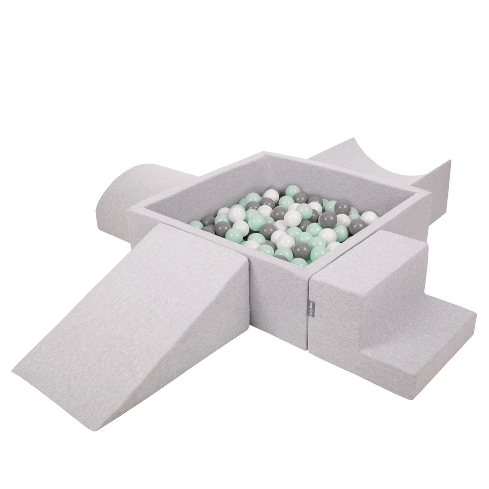 KiddyMoon Piankowy plac zabaw PPZP-KW30D-115 z piłeczkami Zabawka plac zabaw, jasnoszary: biały-szary-mięta