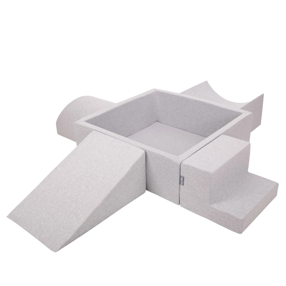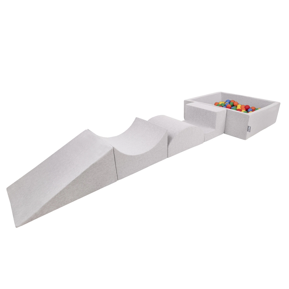 KiddyMoon Piankowy plac zabaw PPZP-KW30D-115 z piłeczkami Zabawka plac zabaw, jasnoszary: żółty-zielony-niebieski-czerwony-pomarańcz
