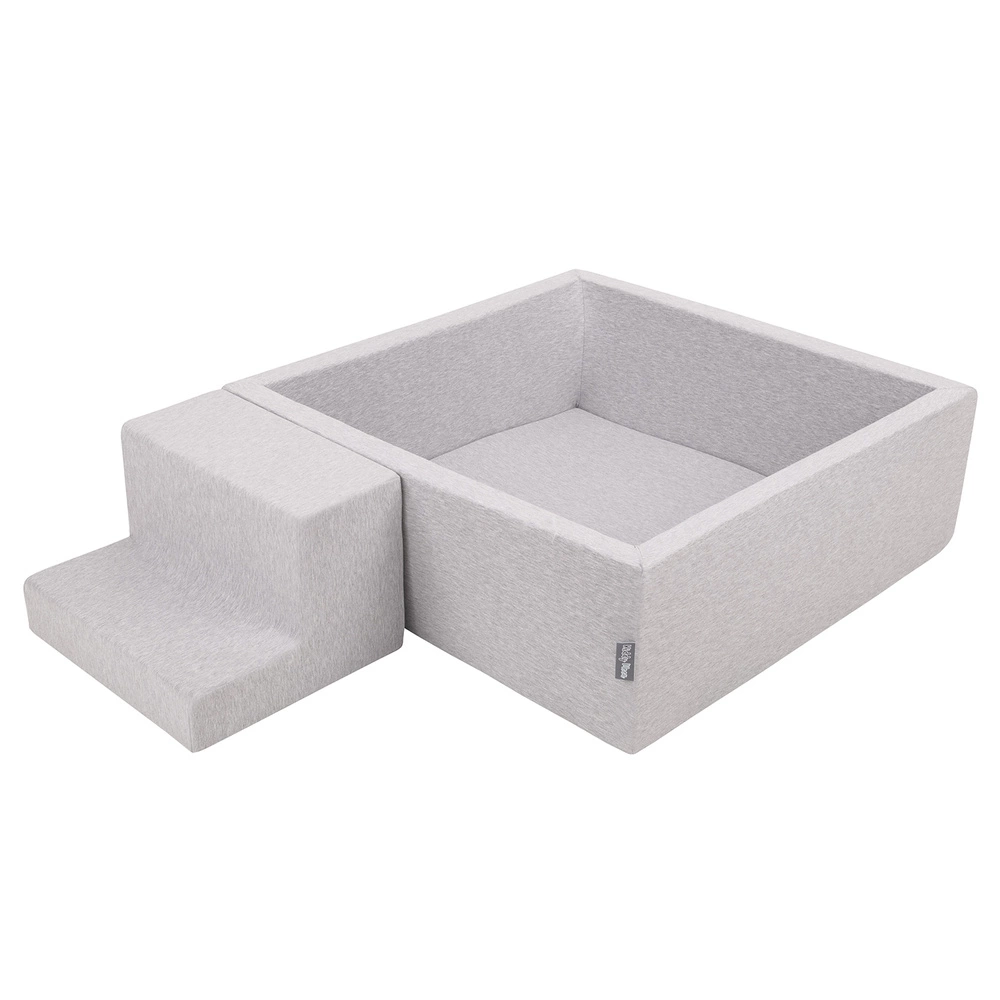 KiddyMoon Piankowy plac zabaw PPZP-KW30D-122 z piłeczkami Zabawka plac zabaw, jasnoszary: żółty-zielony-niebieski-czerwony-pomarańcz