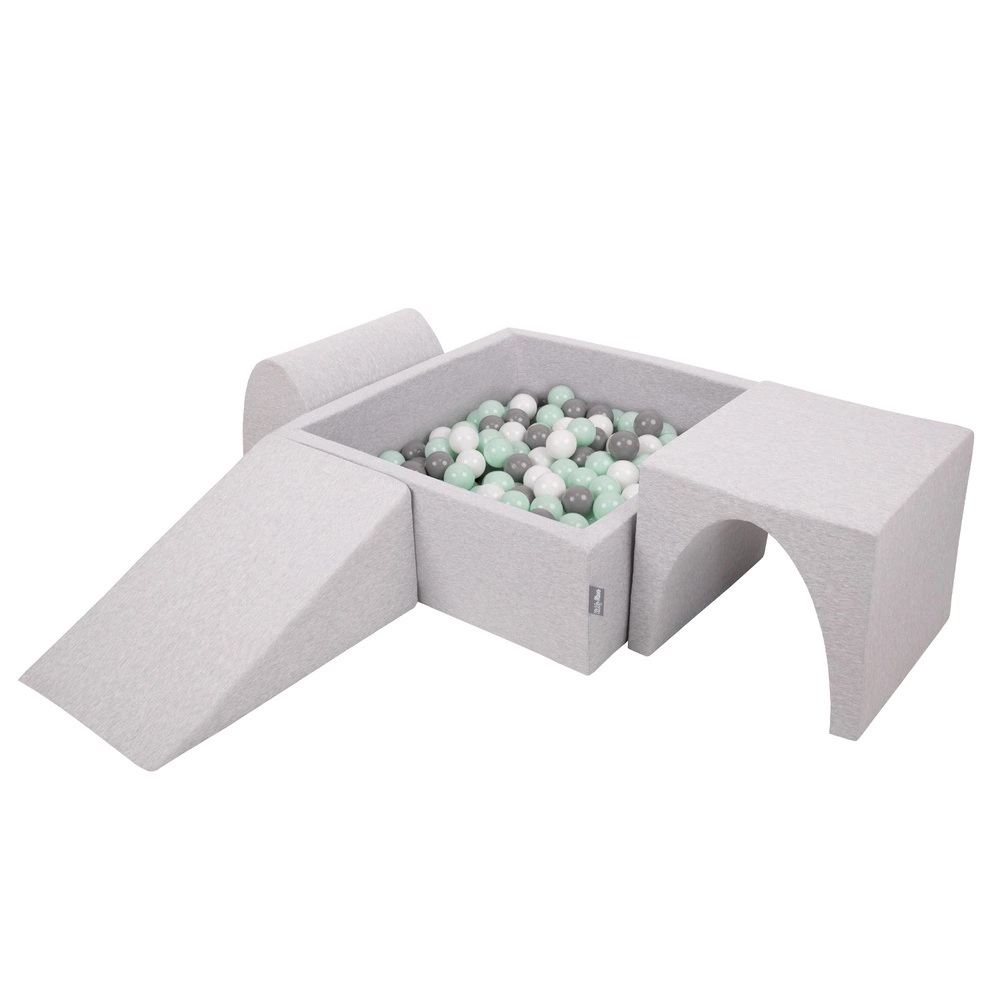 KiddyMoon Piankowy plac zabaw PPZP-KW30D-124 z piłeczkami Zabawka plac zabaw, jasnoszary: biały-szary-mięta
