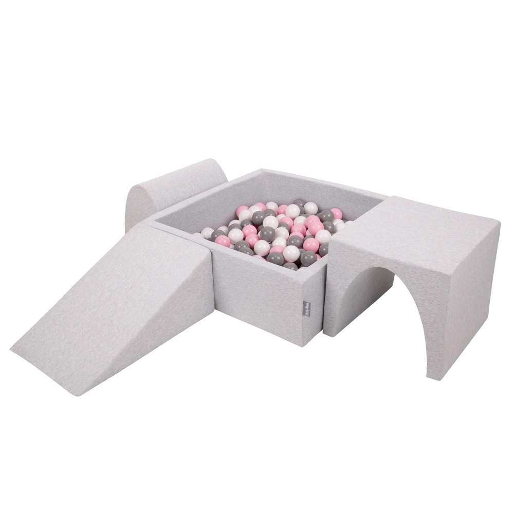 KiddyMoon Piankowy plac zabaw PPZP-KW30D-124 z piłeczkami Zabawka plac zabaw, jasnoszary: biały-szary-pudrowy róż