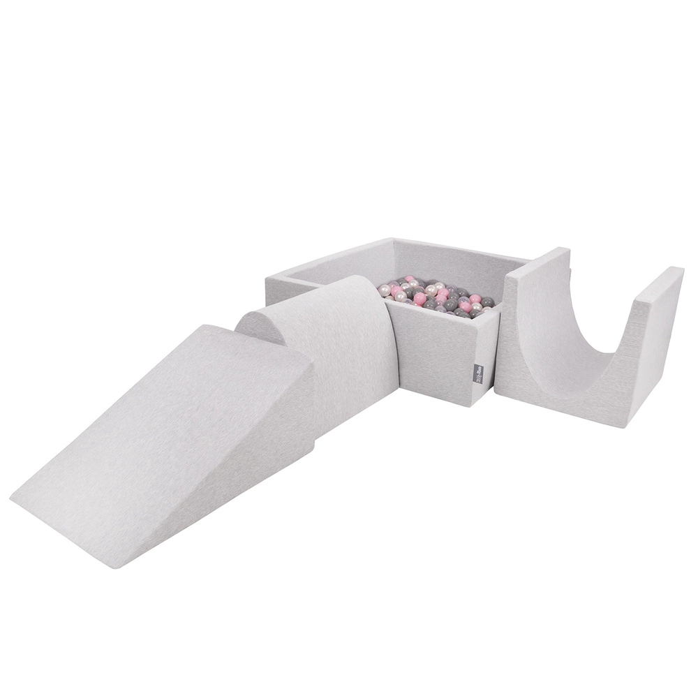 KiddyMoon Piankowy plac zabaw PPZP-KW30D-124 z piłeczkami Zabawka plac zabaw, jasnoszary: perła-szary-transparent-pudrowy róż