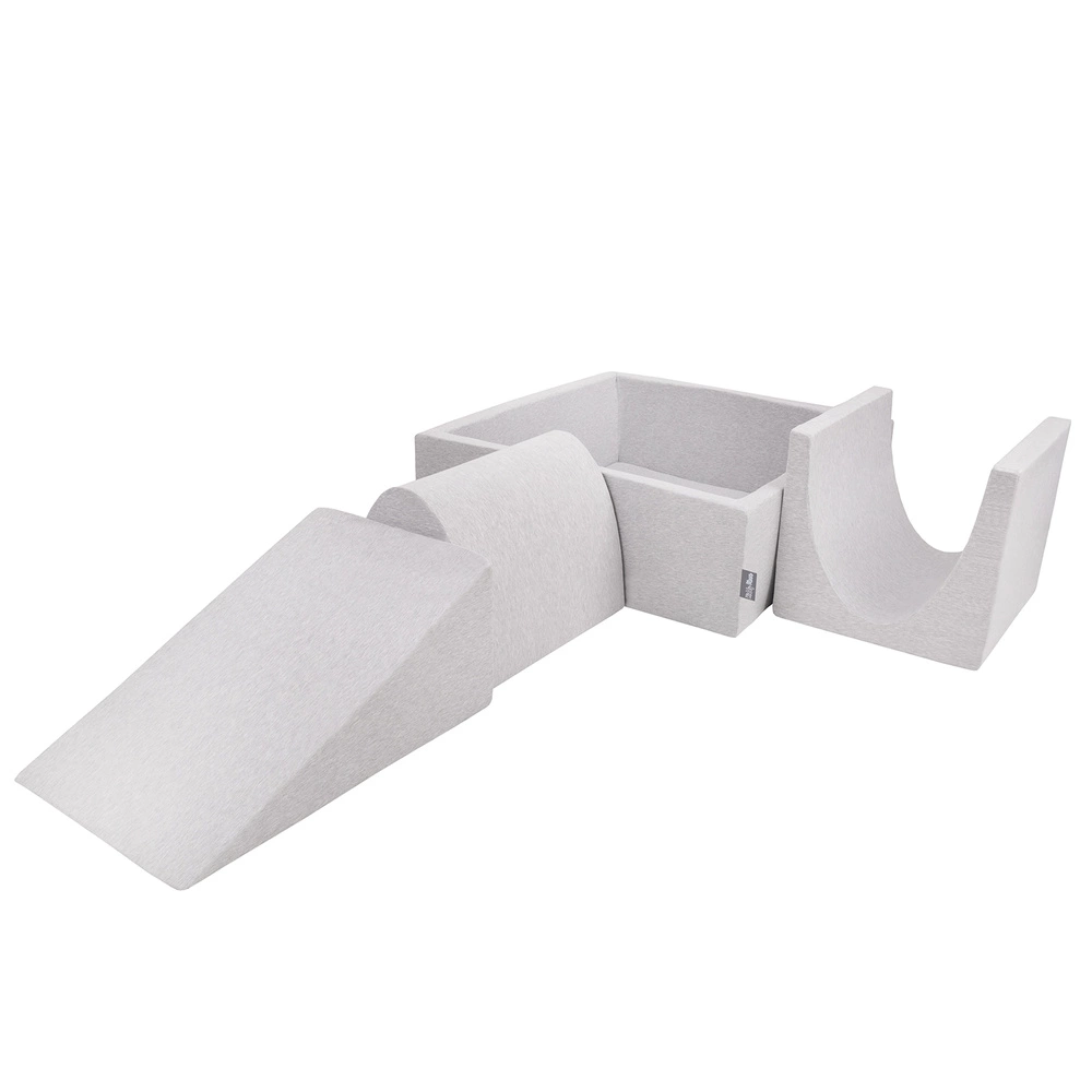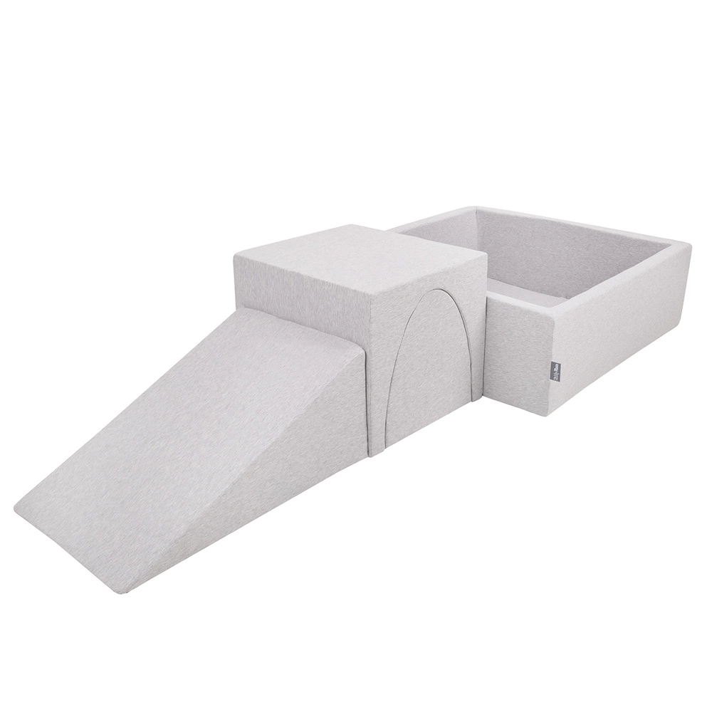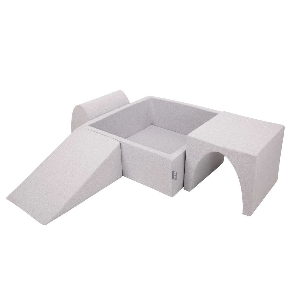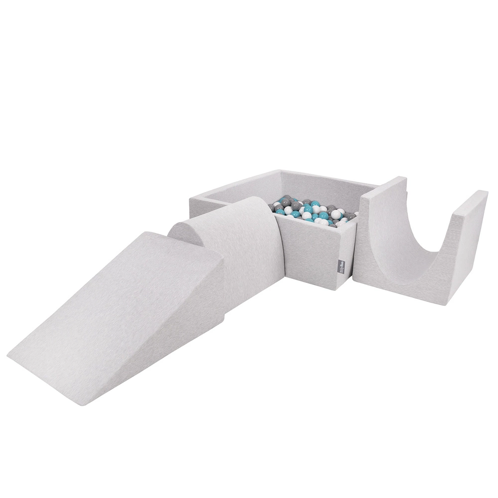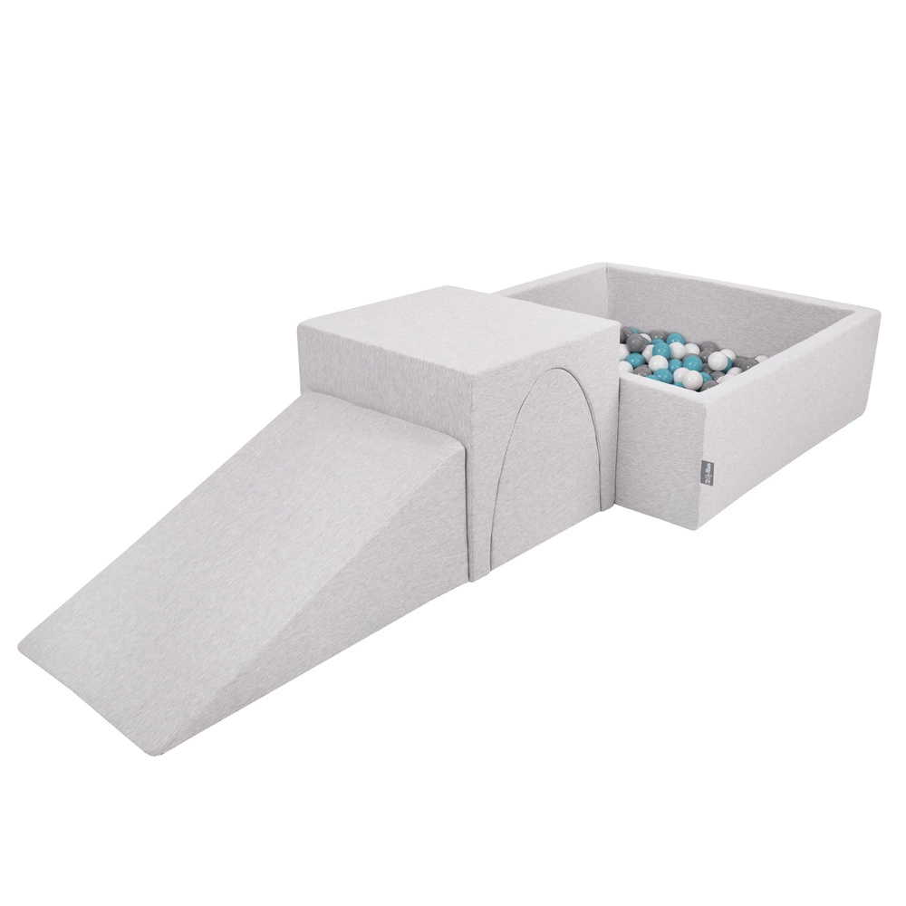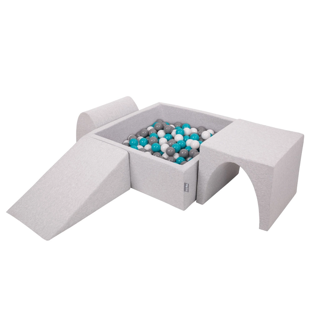 KiddyMoon Piankowy plac zabaw PPZP-KW30D-124 z piłeczkami Zabawka plac zabaw, jasnoszary: szary-biały-turkus