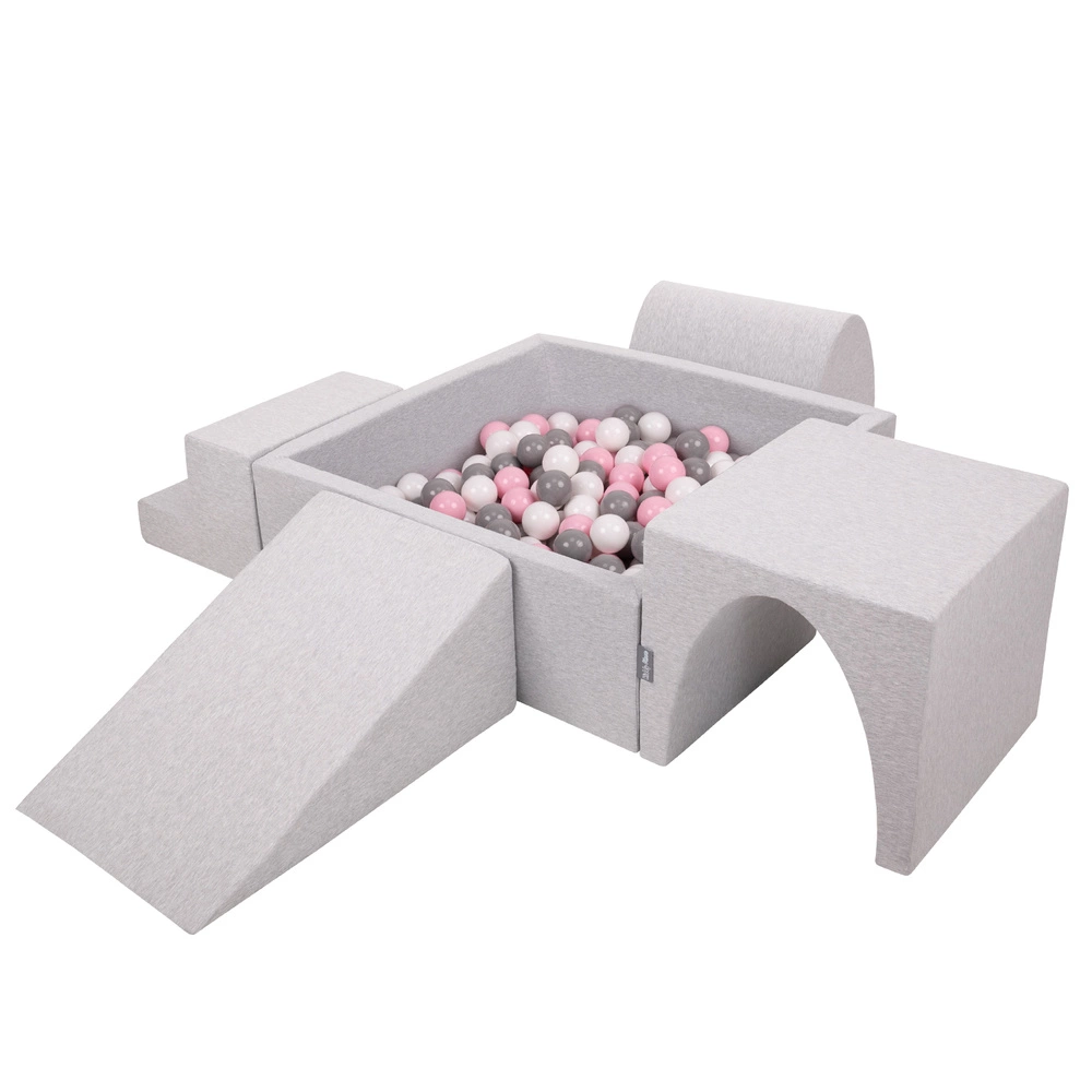 KiddyMoon Piankowy plac zabaw PPZP-KW30D-125 z piłeczkami Zabawka plac zabaw, jasnoszary: biały-szary-pudrowy róż