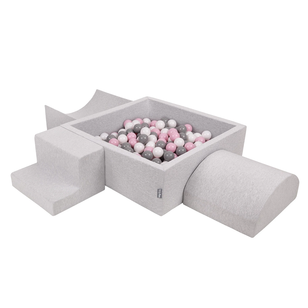 KiddyMoon Piankowy plac zabaw PPZP-KW30D-134 z piłeczkami Zabawka plac zabaw, jasnoszary: biały-szary-pudrowy róż