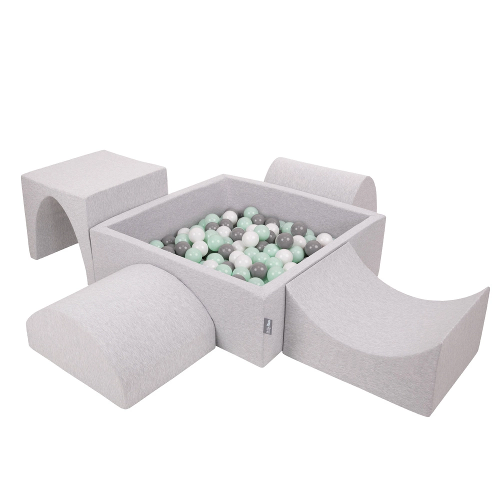 KiddyMoon Piankowy plac zabaw PPZP-KW30D-135 z piłeczkami Zabawka plac zabaw, jasnoszary: biały-szary-mięta