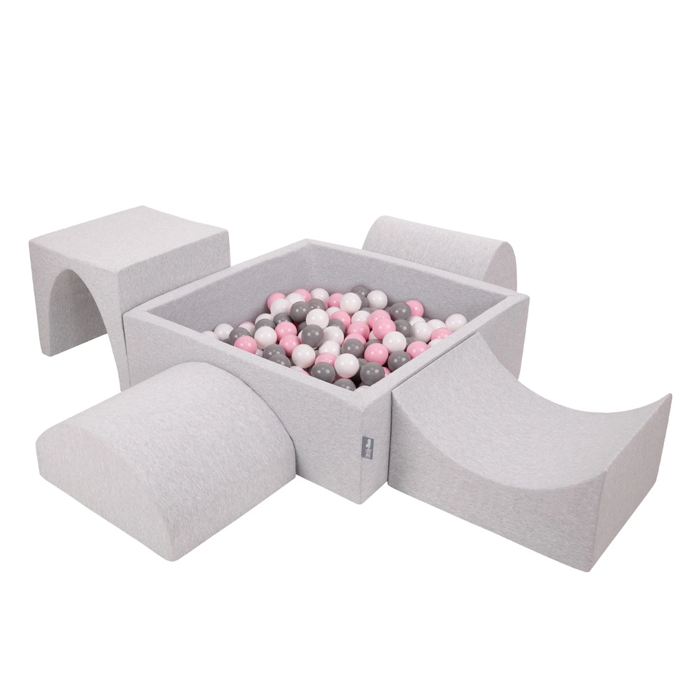KiddyMoon Piankowy plac zabaw PPZP-KW30D-135 z piłeczkami Zabawka plac zabaw, jasnoszary: biały-szary-pudrowy róż