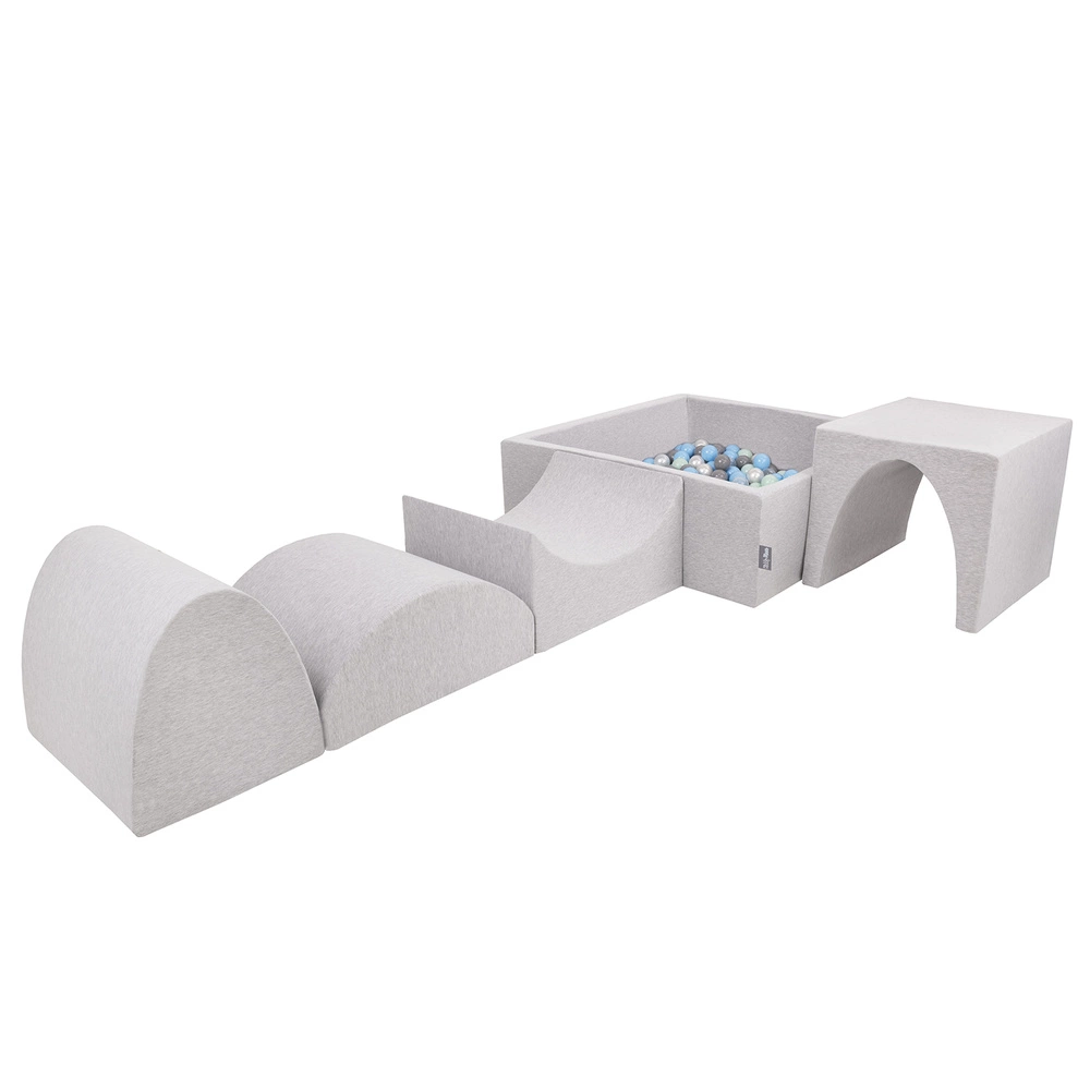 KiddyMoon Piankowy plac zabaw PPZP-KW30D-135 z piłeczkami Zabawka plac zabaw, jasnoszary: perła-szary-transparent-babyblue-mięta