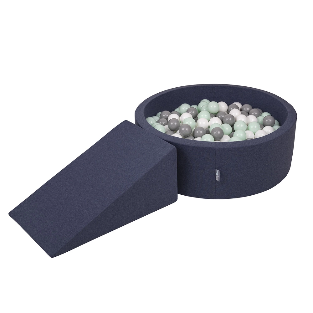 KiddyMoon Piankowy plac zabaw PPZP-OK30D-112 z piłeczkami Zabawka plac zabaw, granatowy: biały-szary-mięta