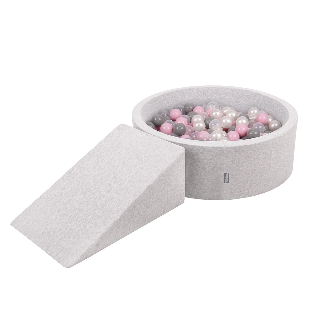 KiddyMoon Piankowy plac zabaw PPZP-OK30D-112 z piłeczkami Zabawka plac zabaw, jasnoszary: perła-szary-transparent-pudrowy róż