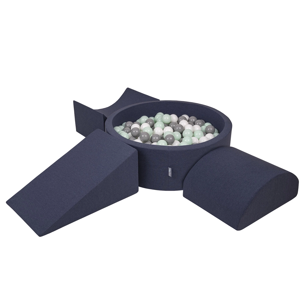 KiddyMoon Piankowy plac zabaw PPZP-OK30D-114 z piłeczkami Zabawka plac zabaw, granatowy: biały-szary-mięta