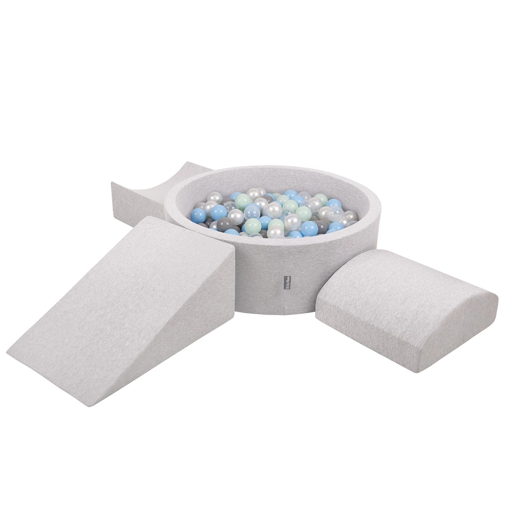 KiddyMoon Piankowy plac zabaw PPZP-OK30D-114 z piłeczkami Zabawka plac zabaw, jasnoszary: perła-szary-transparent-babyblue-mięta
