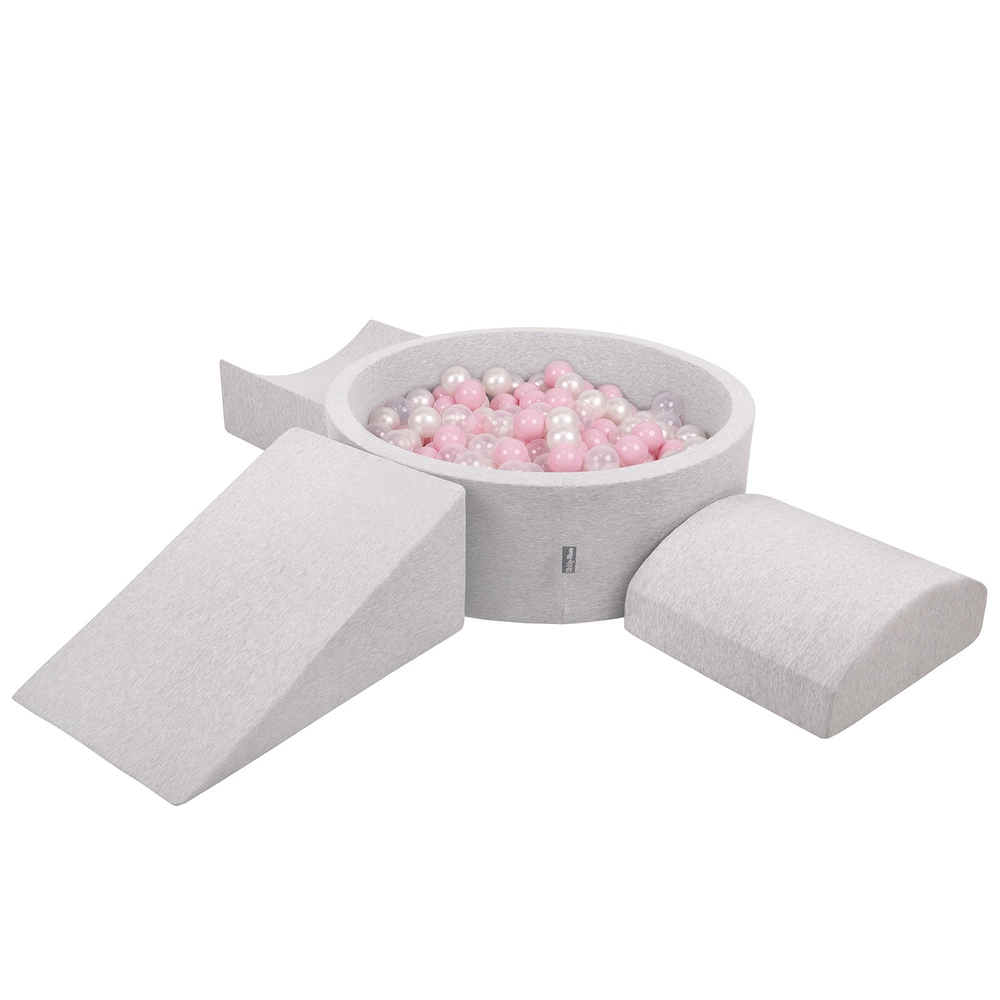 KiddyMoon Piankowy plac zabaw PPZP-OK30D-114 z piłeczkami Zabawka plac zabaw, jasnoszary: pudrowy róż-perła-transparent