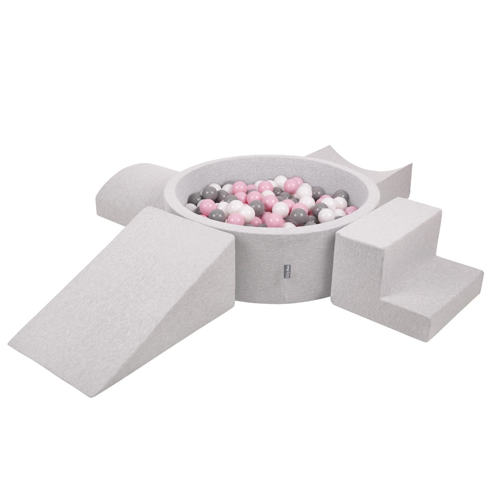 KiddyMoon Piankowy plac zabaw PPZP-OK30D-115 z piłeczkami Zabawka plac zabaw, jasnoszary: biały-szary-pudrowy róż